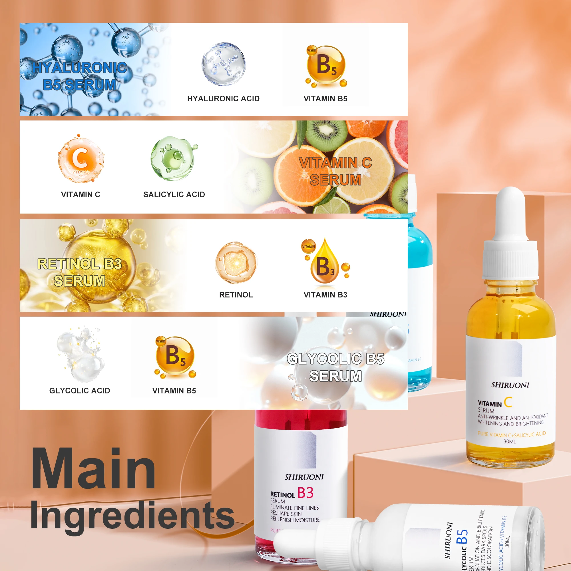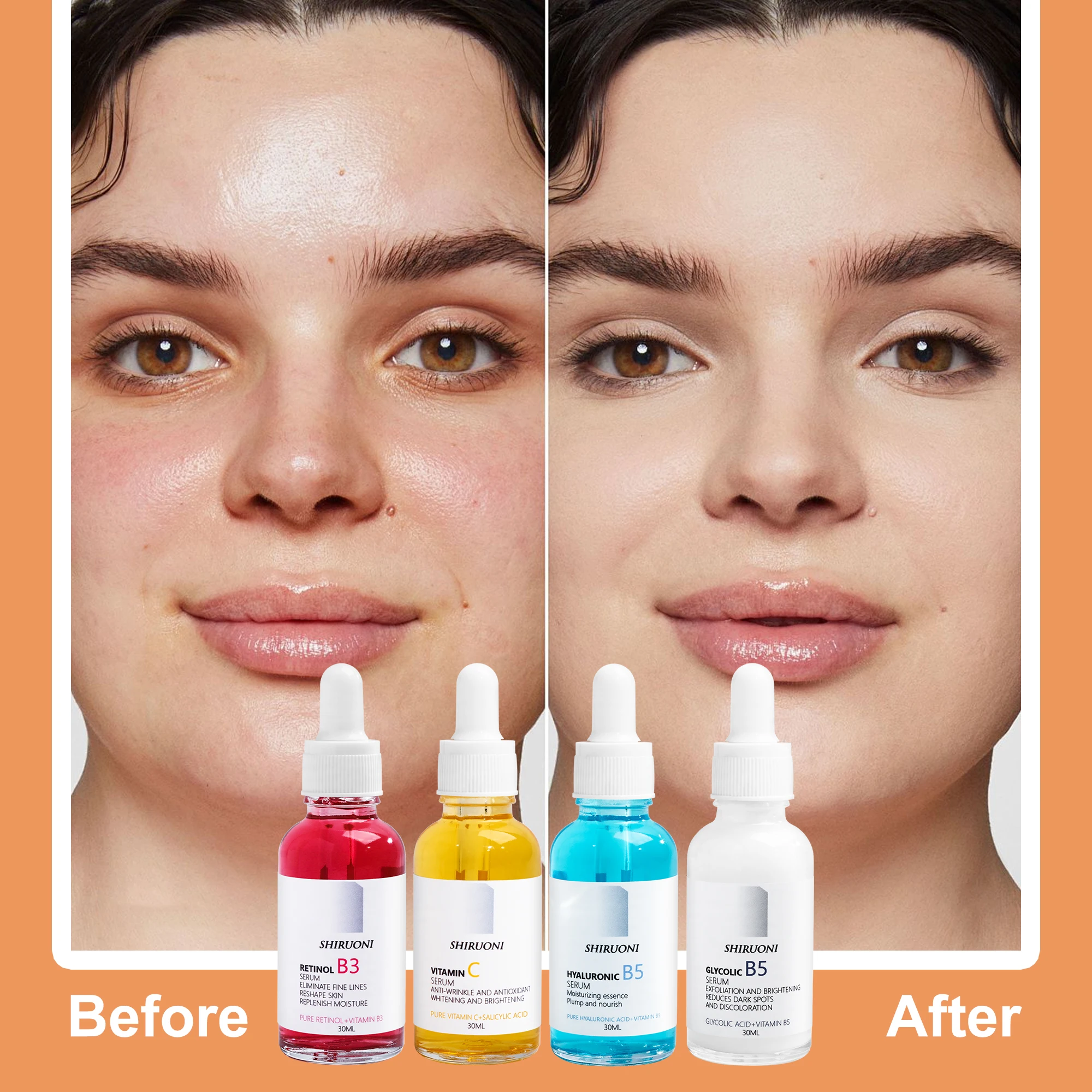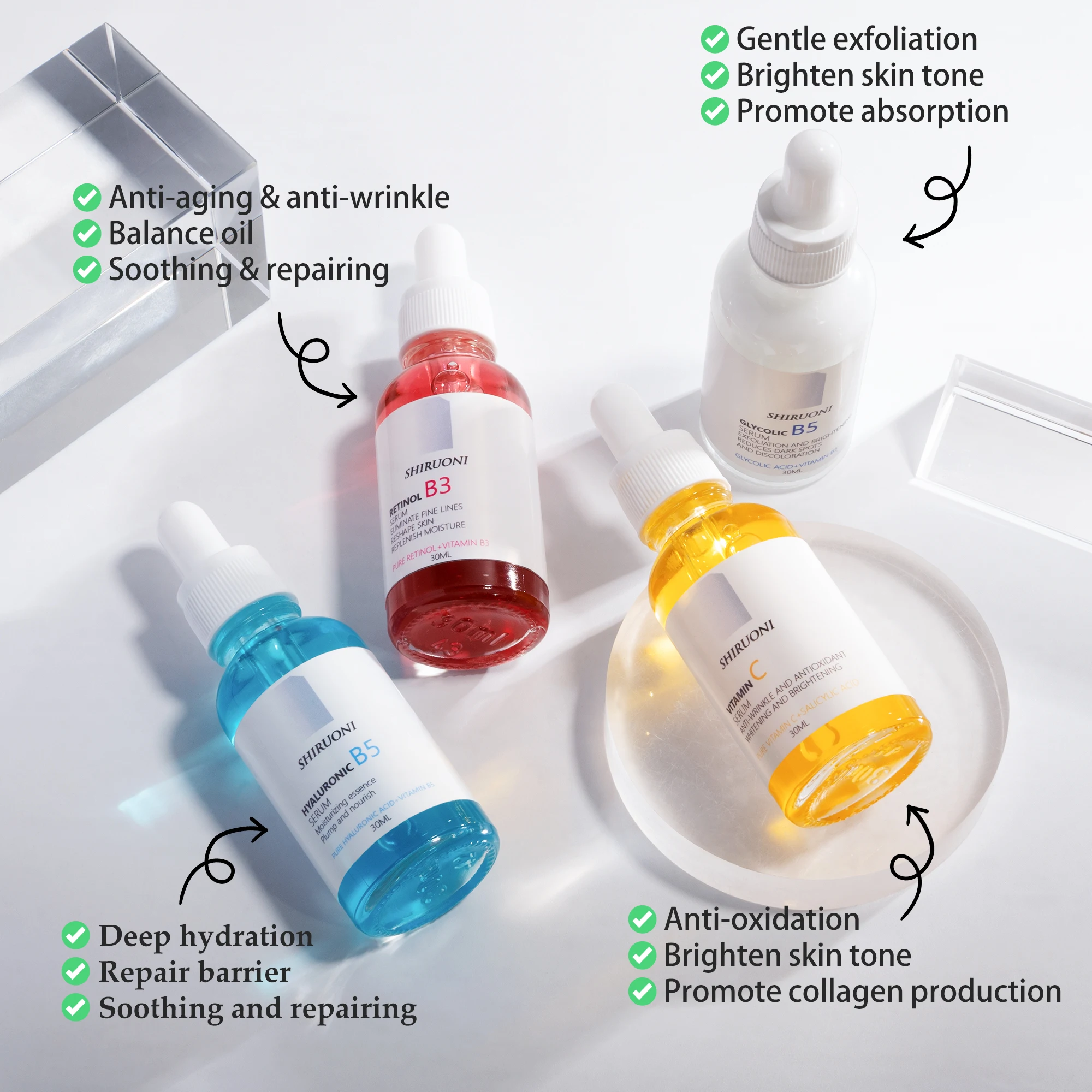 Organic Vegan Skin Whitening Face Serum Kit Glycolic Salicylic Vitamin Skin Lightening Brightening Firming Wrinkle OEM