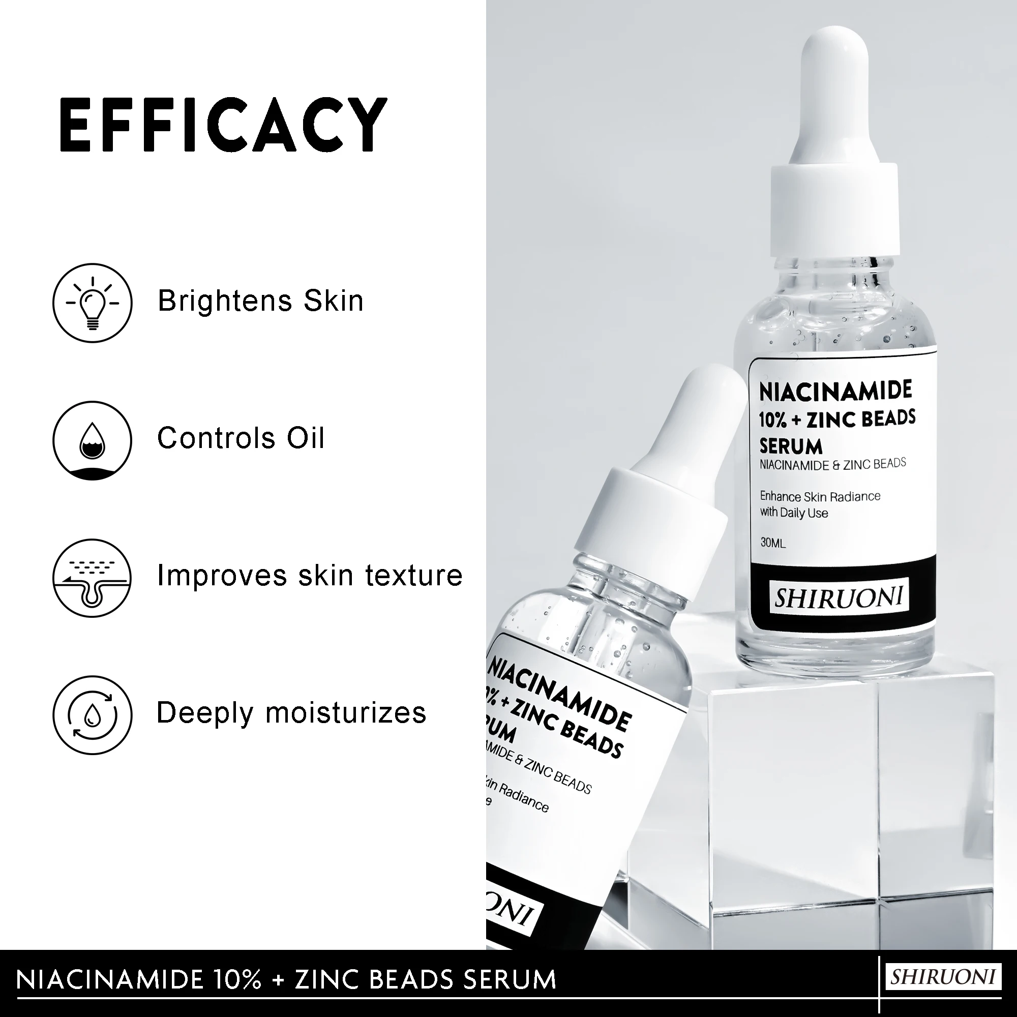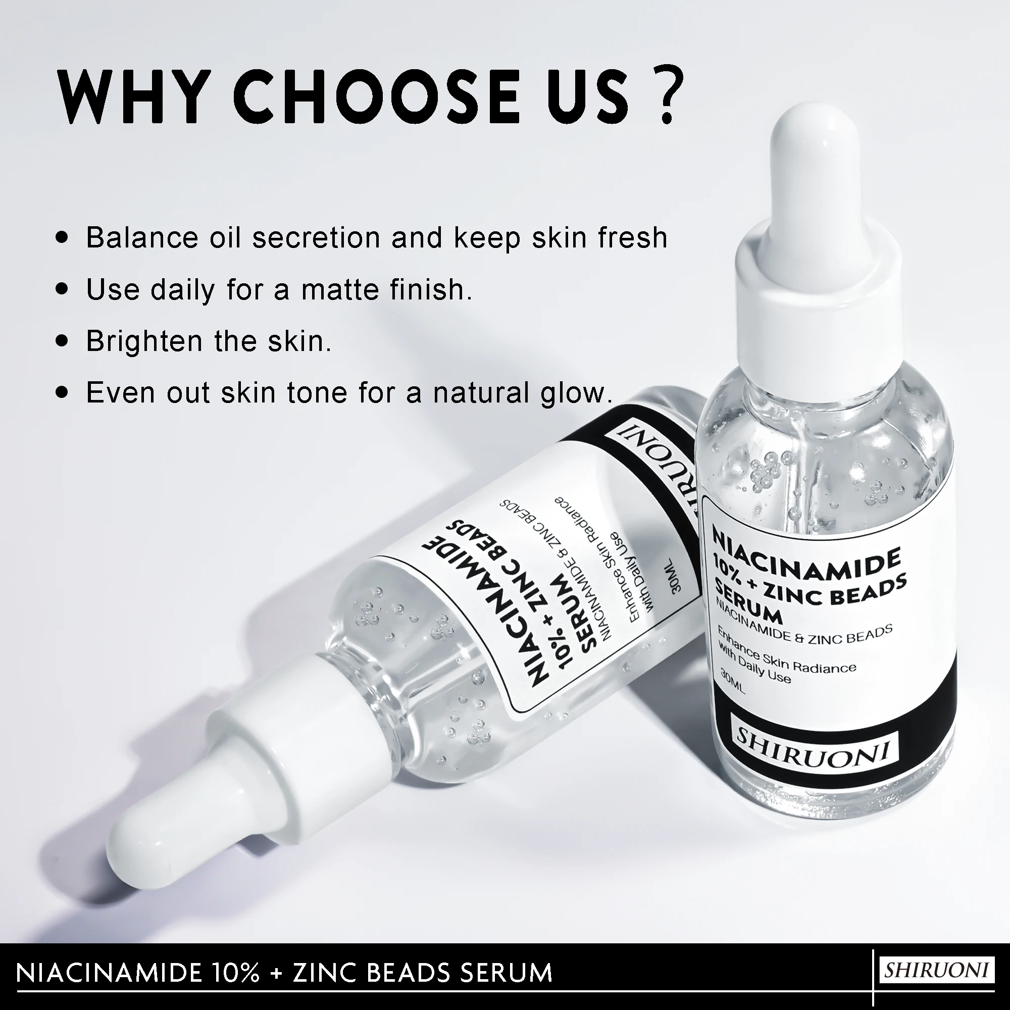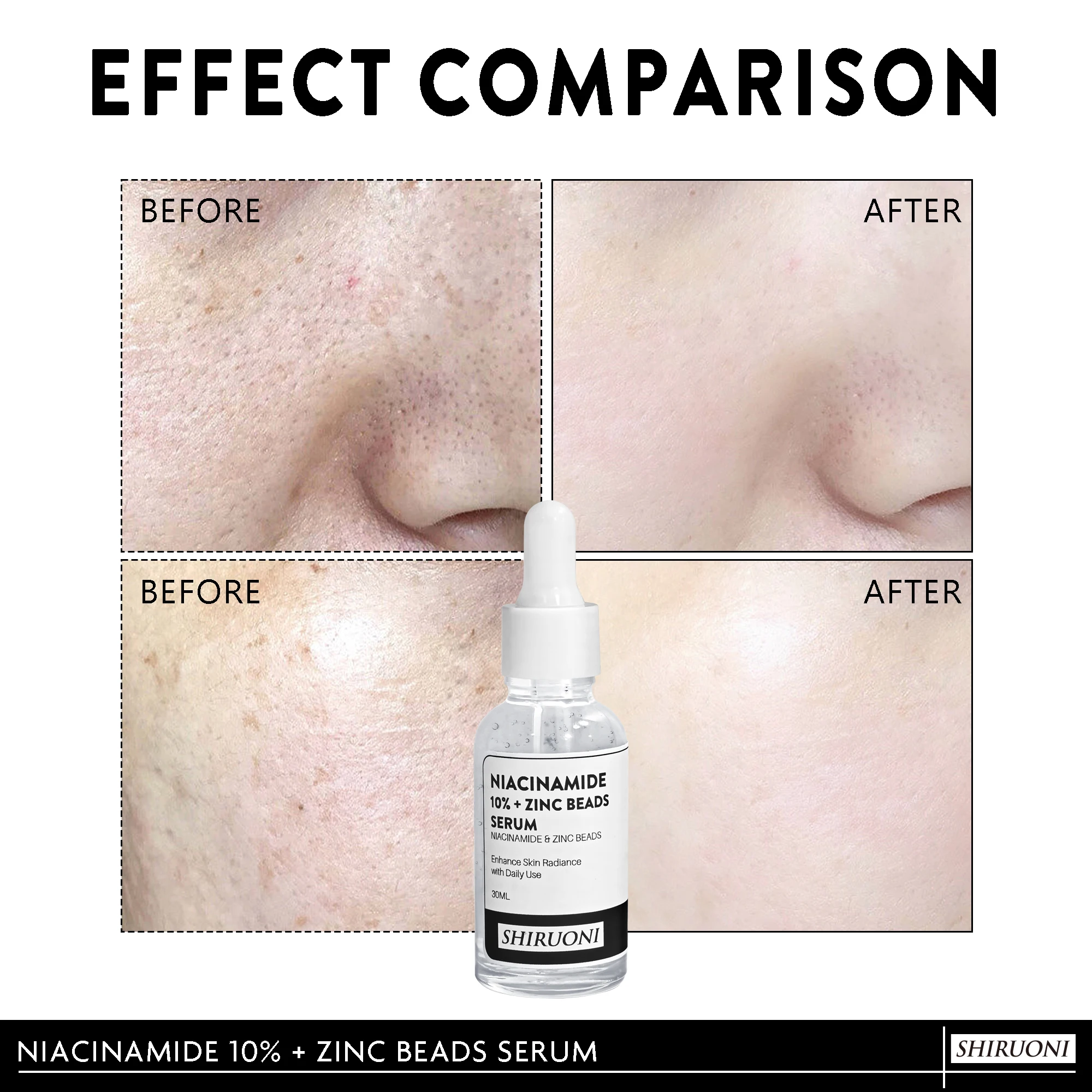 Vegan Zinc Beads 10% Niacinamide Serum Face Essence Acne Anti-Wrinkle Pore Shrinking Whitening Lightening