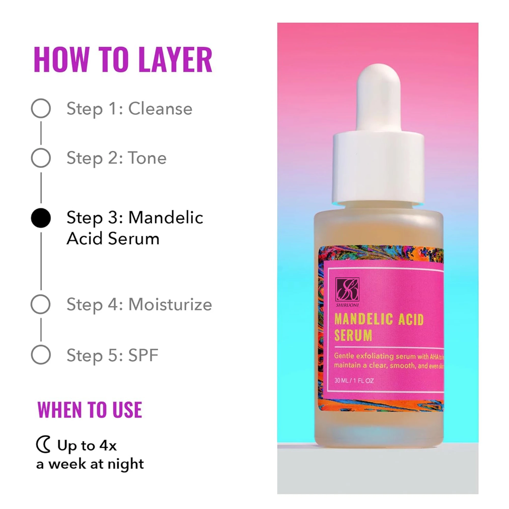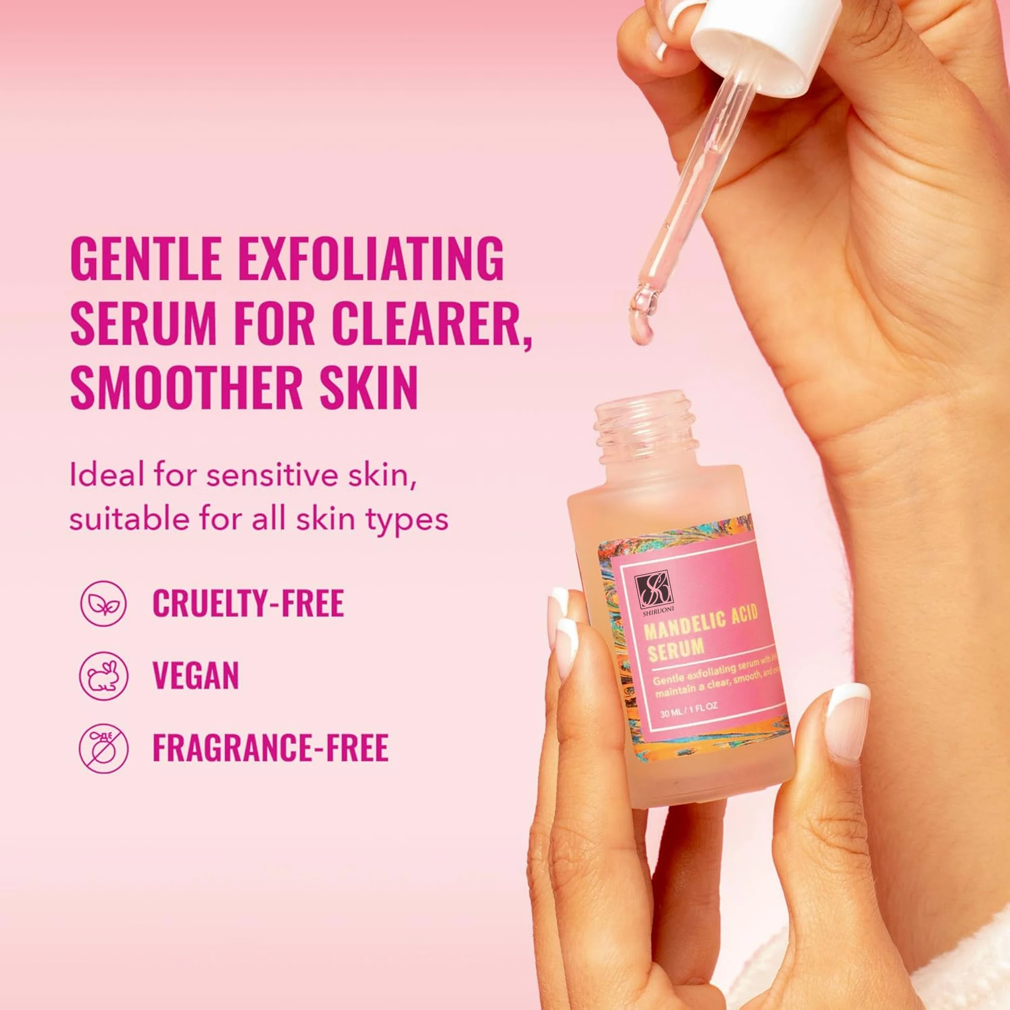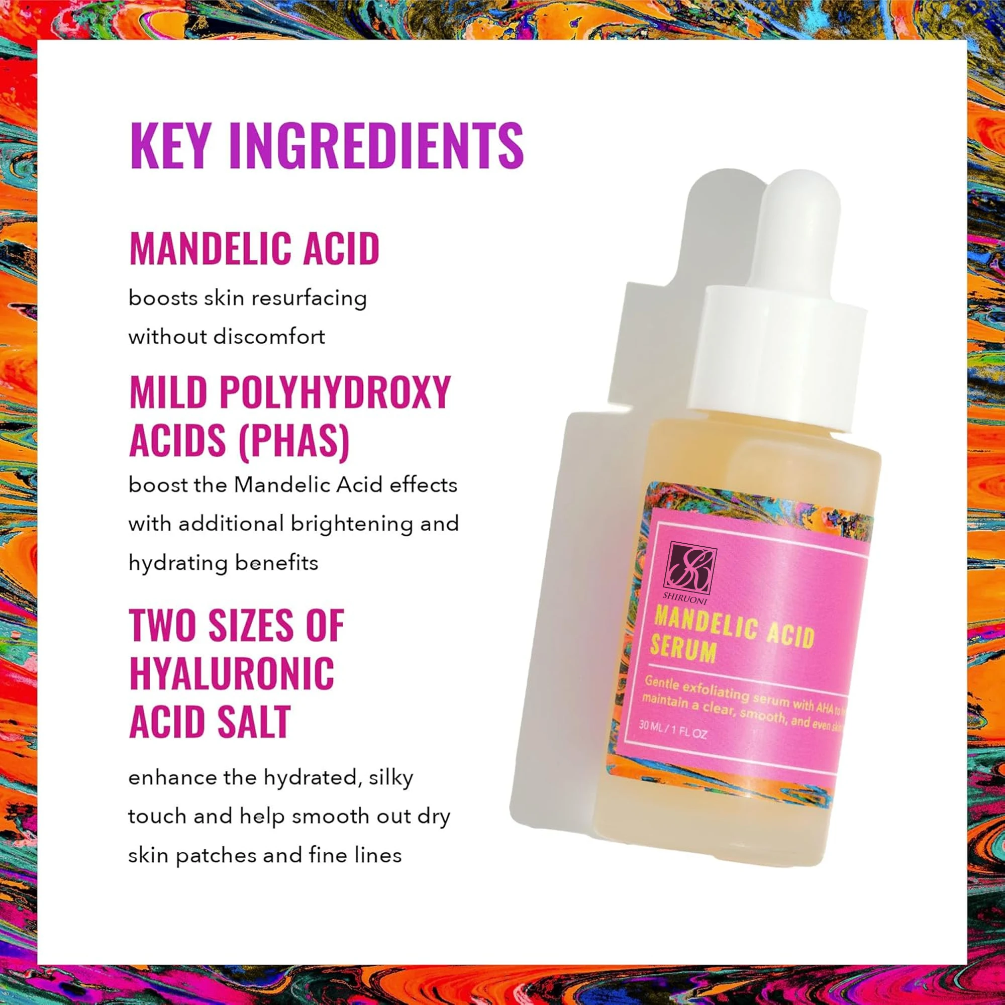 OEM ODM Mandelic Acid Serum Gentle Exfoliating Whitening Brightening Herbal Vegan 30ml Vitamin-Infused Facial Serum