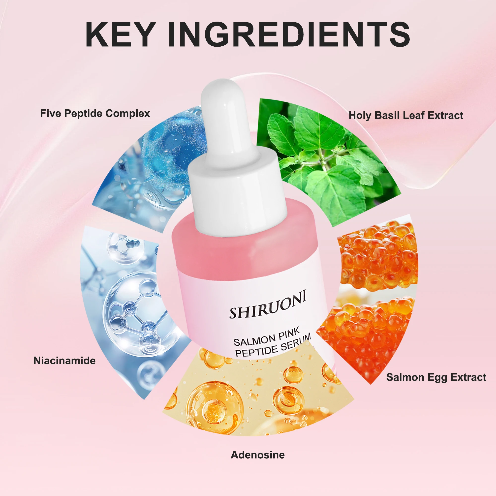 Daily Hydrating Firming Salmon Pink Peptide Serum Whitening Anti-Wrinkle Vitamin C Hyaluronic Acid Vitamin E Herbal Vegan