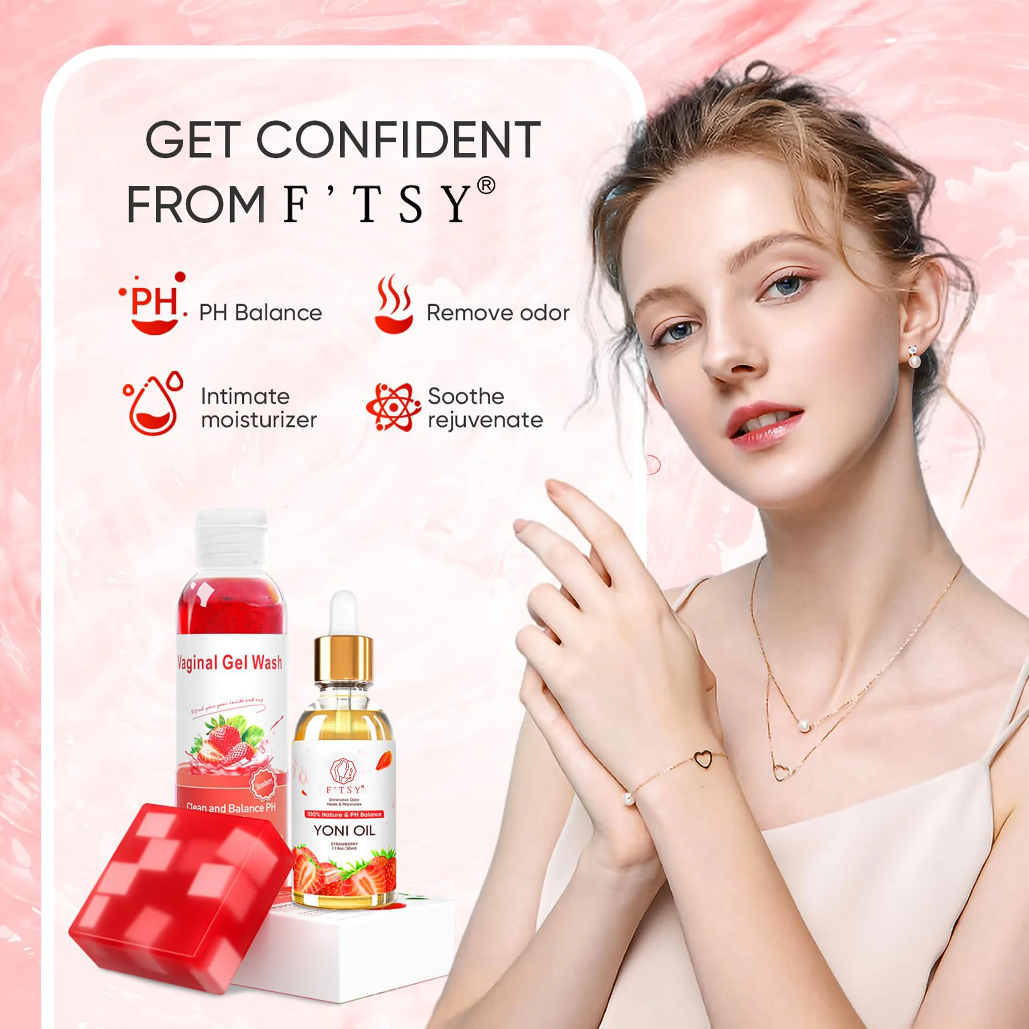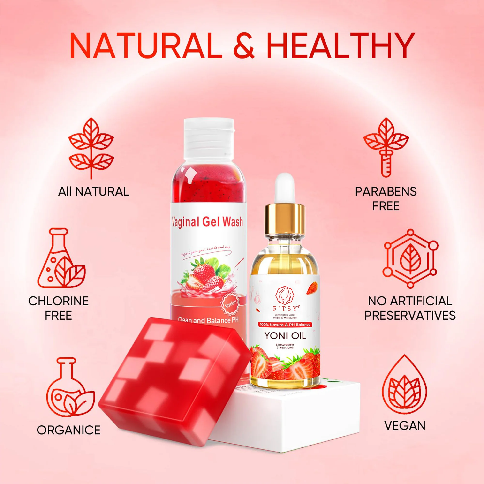 Customized Feminine Wash Yoni Soap Bar Yoni Oil Women pH Balance Yoni Wash for Vaginal Moisturizing Strawberry Intimate Wash Set
