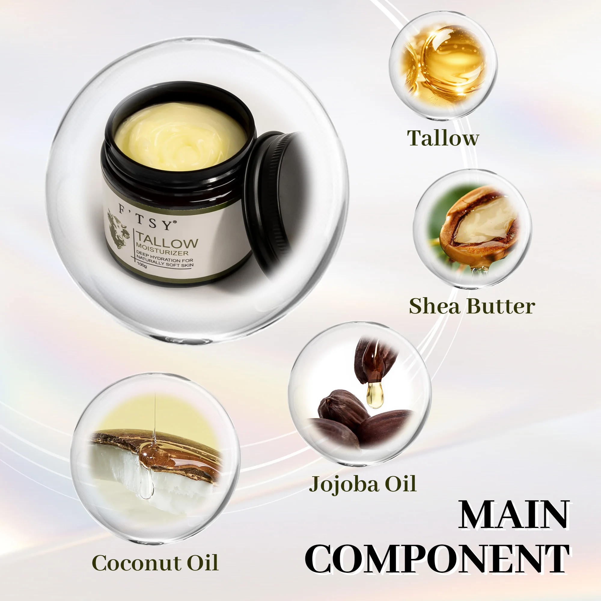 Organic Face Hand Body Nourishing Calming Repairing Beef Tallow Shea Butter Moisturizer Whipped Beef Tallow Balm Cream OEM ODM