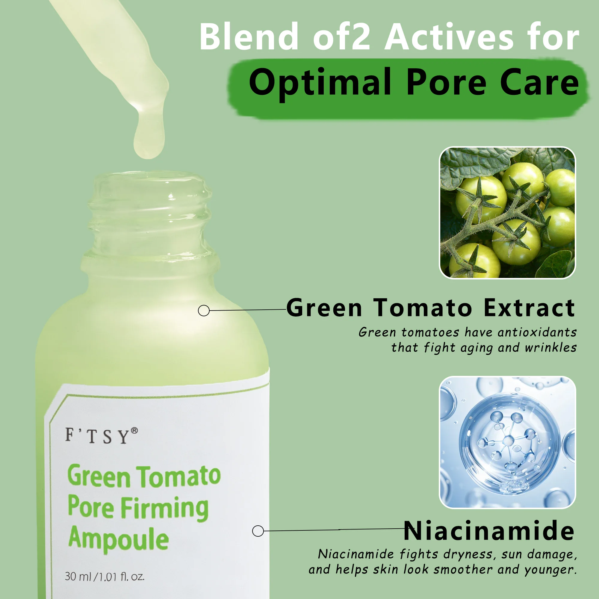 ODM Green Tomato Niacinamide Hydrating Facial Face Serum Whitening Anti-Wrinkle Exfoliating Liquid Oil