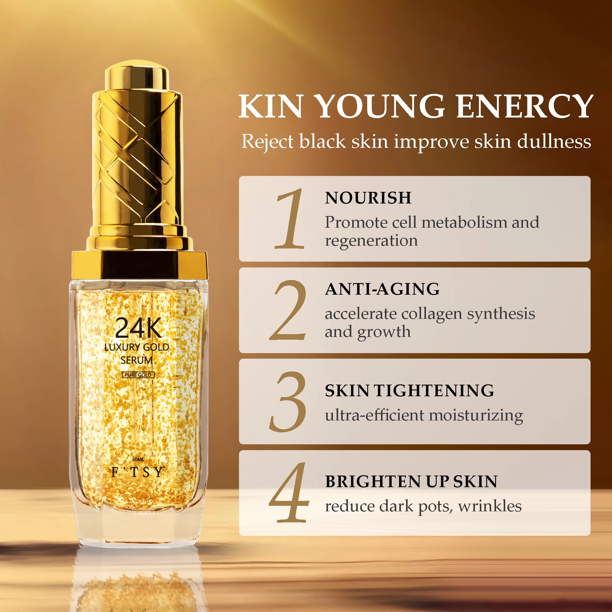 OEM Luxurious 24K Gold Rosehip Oil Vegan Anti-Wrinkle Whitening Facial Skin Care Face Serum Organic Liquid