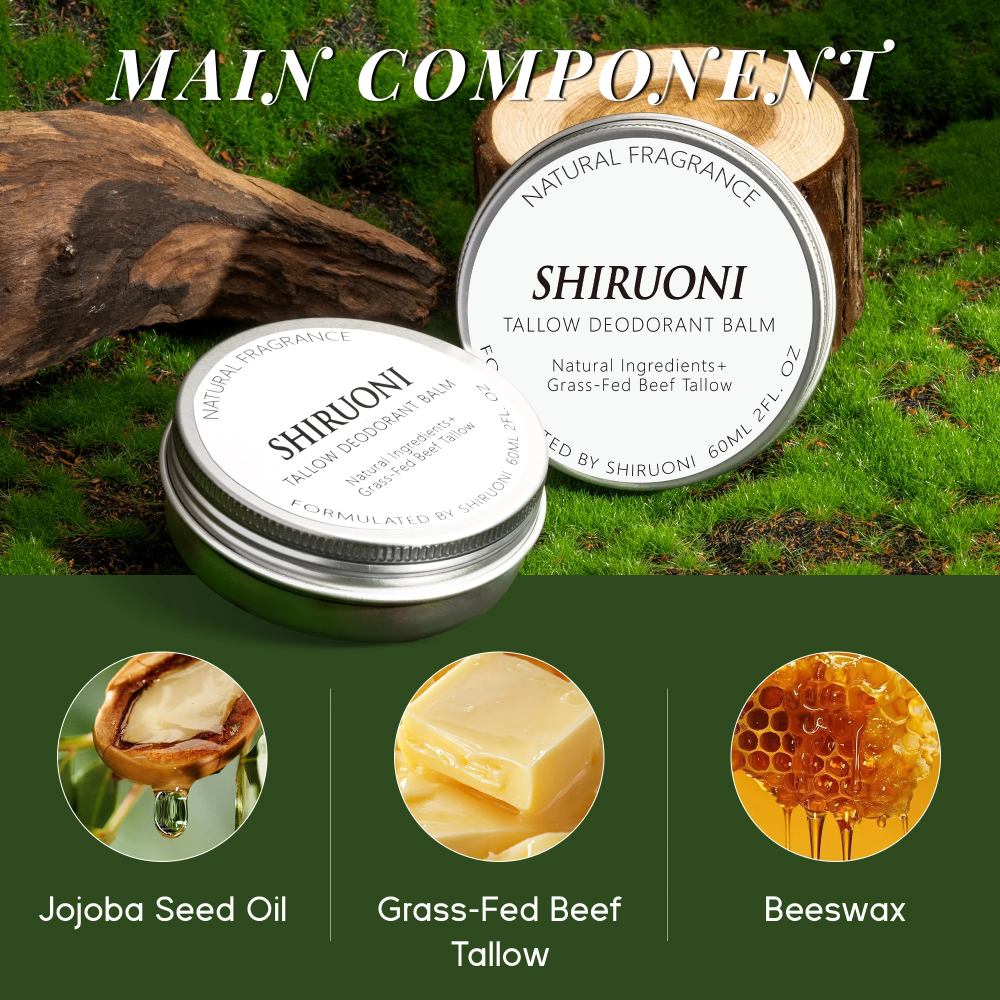 Private Label Natural Vegan Deodorant Balm Grass-Fed Tallow Anti Odor Sweat Moisture Absorption Refreshing Body Underarm Armpits