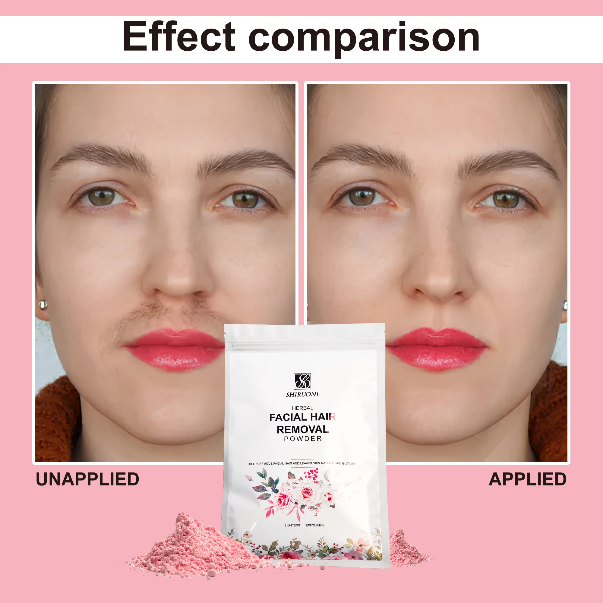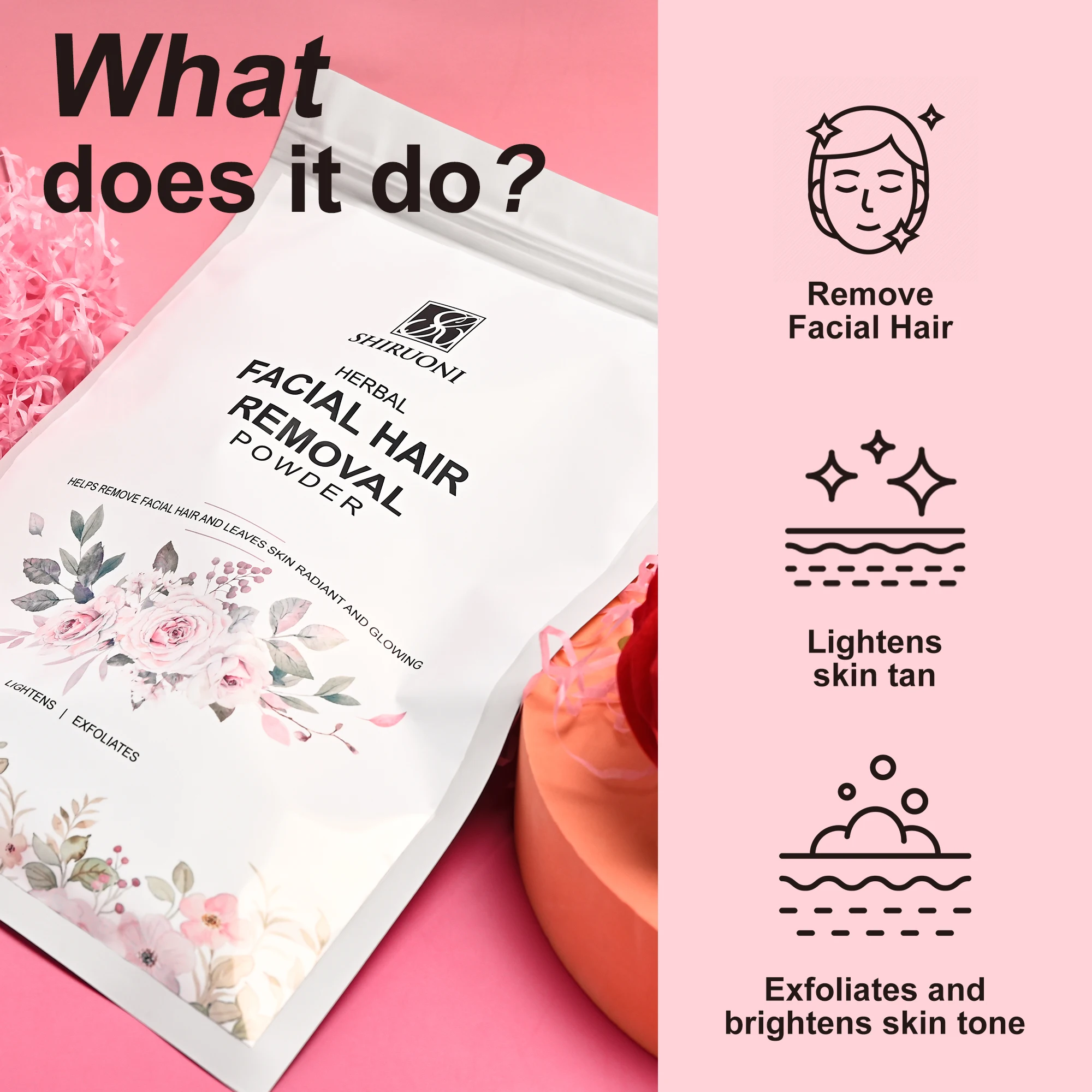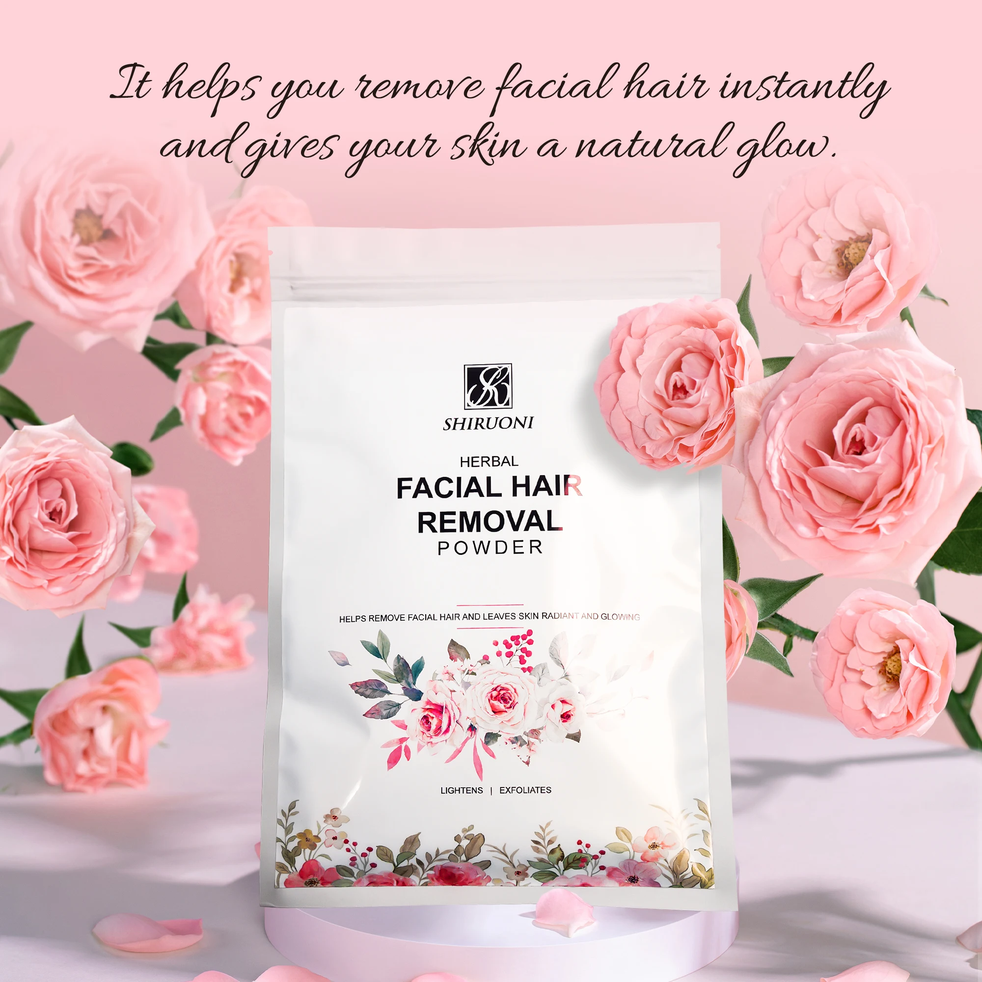 Private Label Painless Rose Rice Lady Face Hair Removal Powder Skin Glowing Lightening Brightening