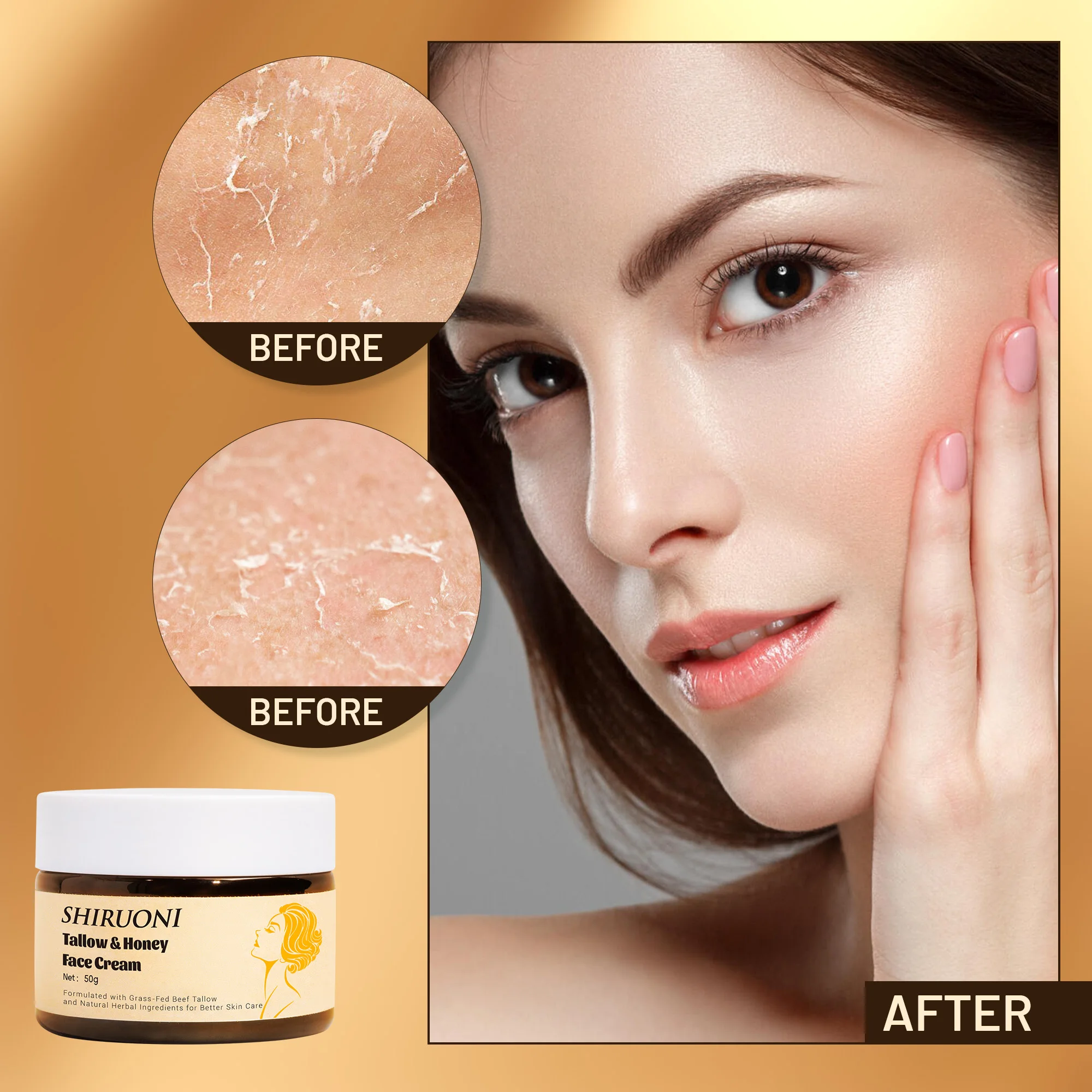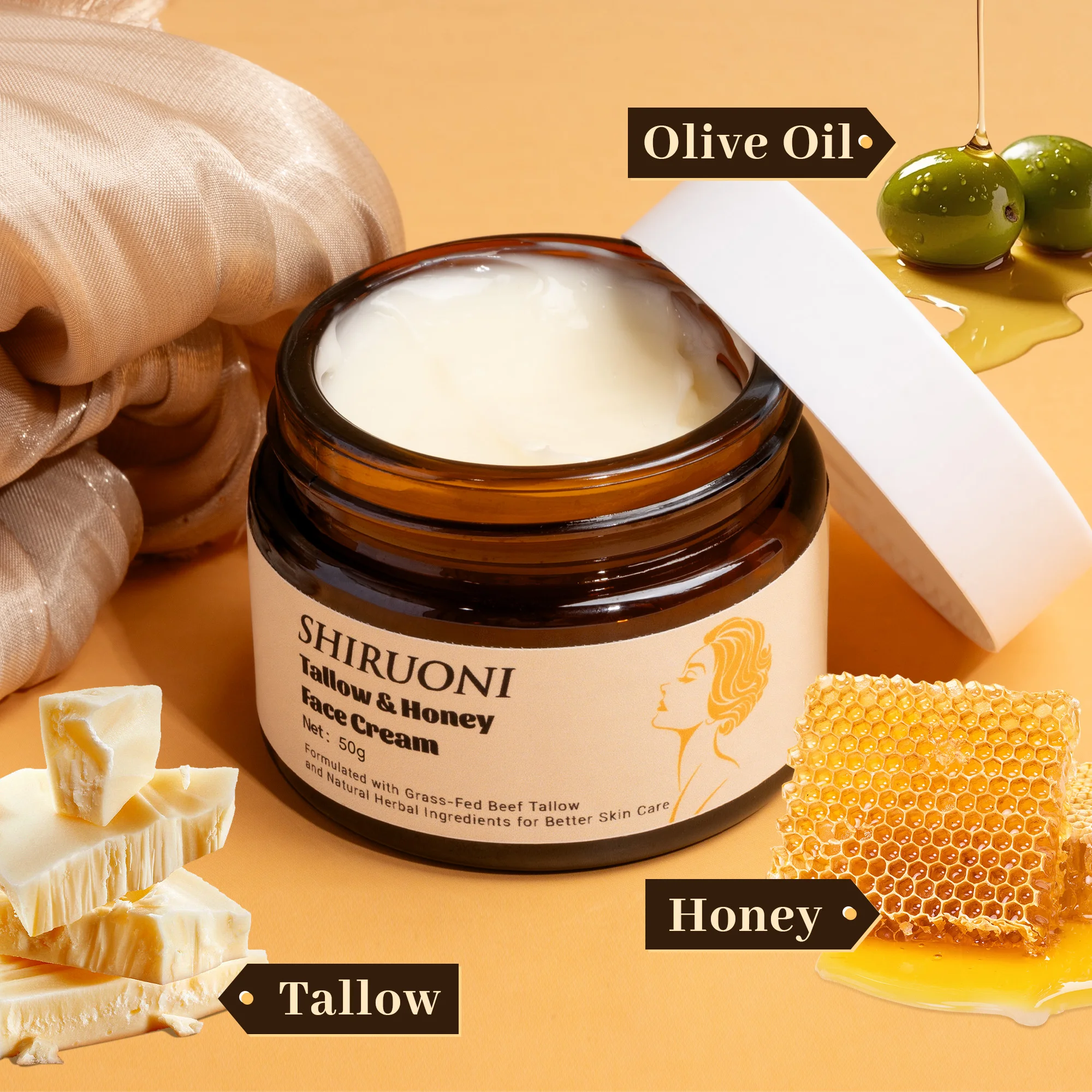 Private Label Tallow Honey Cream Long Lasting Glow Smooth Hydrates Moisturizer Nourishes Skin Jojoba Oil Tallow Honey Face Cream