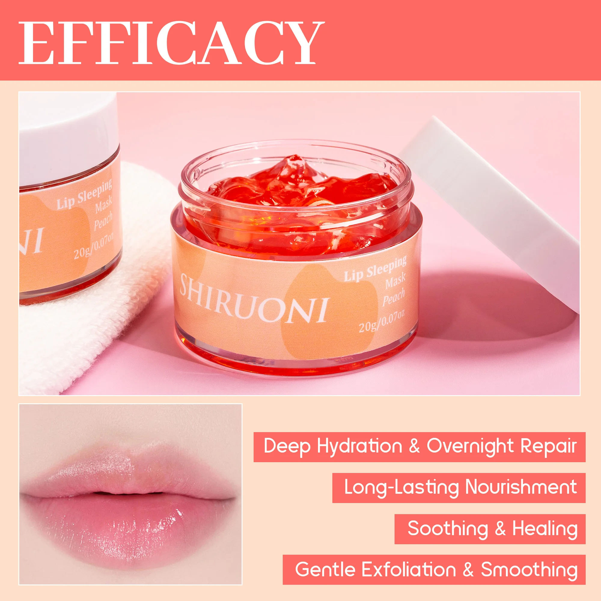 Custom Logo Peach Collagen Lip Repair Sleeping Mask Lightening Firming Hydrating Nourishing Lip Skin Care OEM Supply