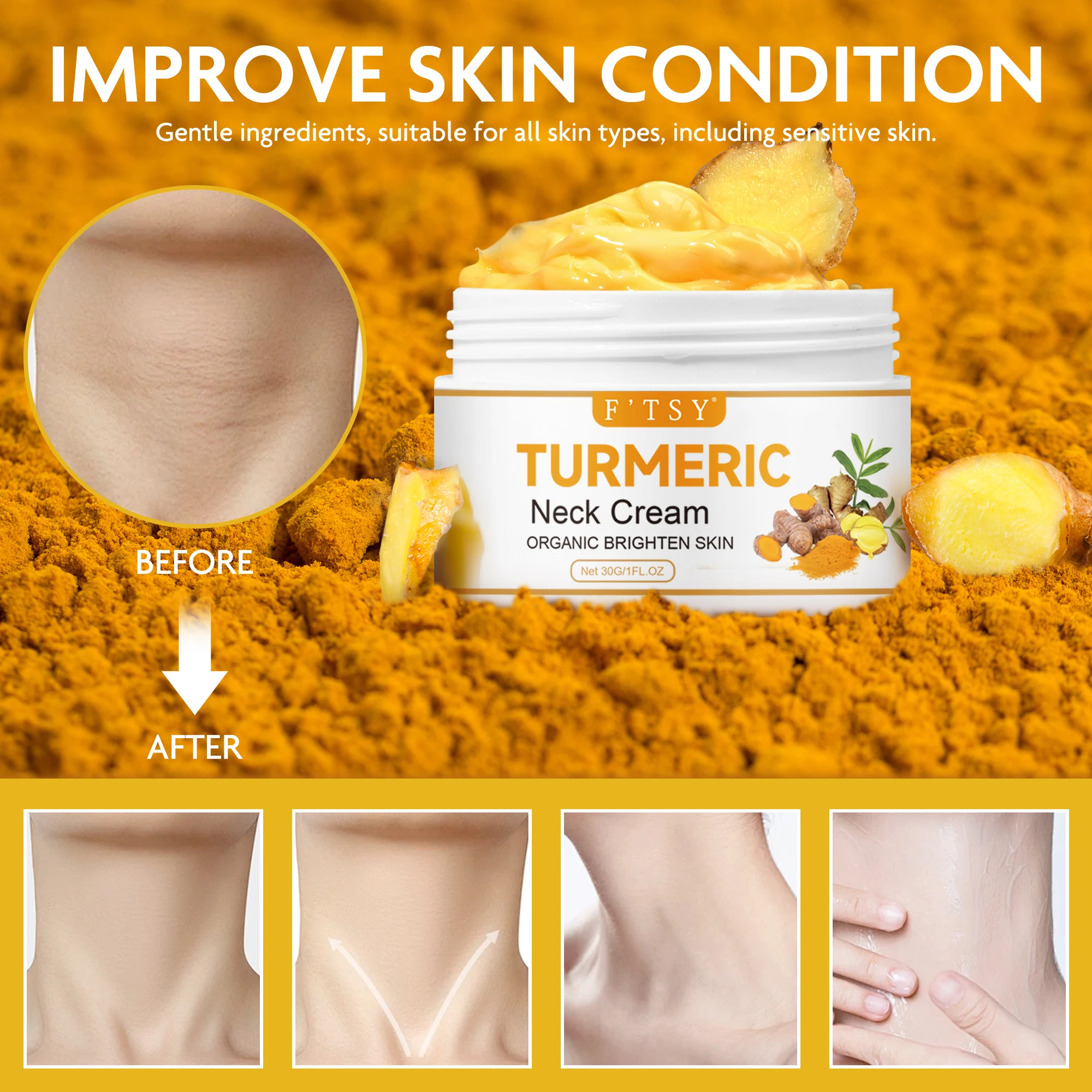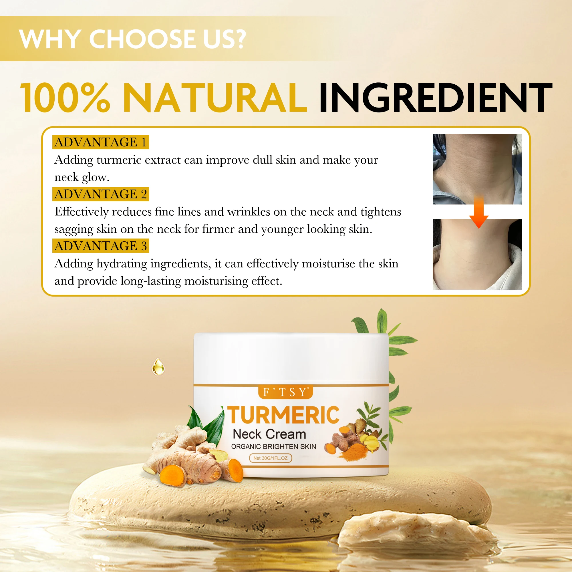 OEM ODM Turmeric Neck Lift Cream for Tightening and Firming Neck Brightening and Anti-Wrinkle Skin Care