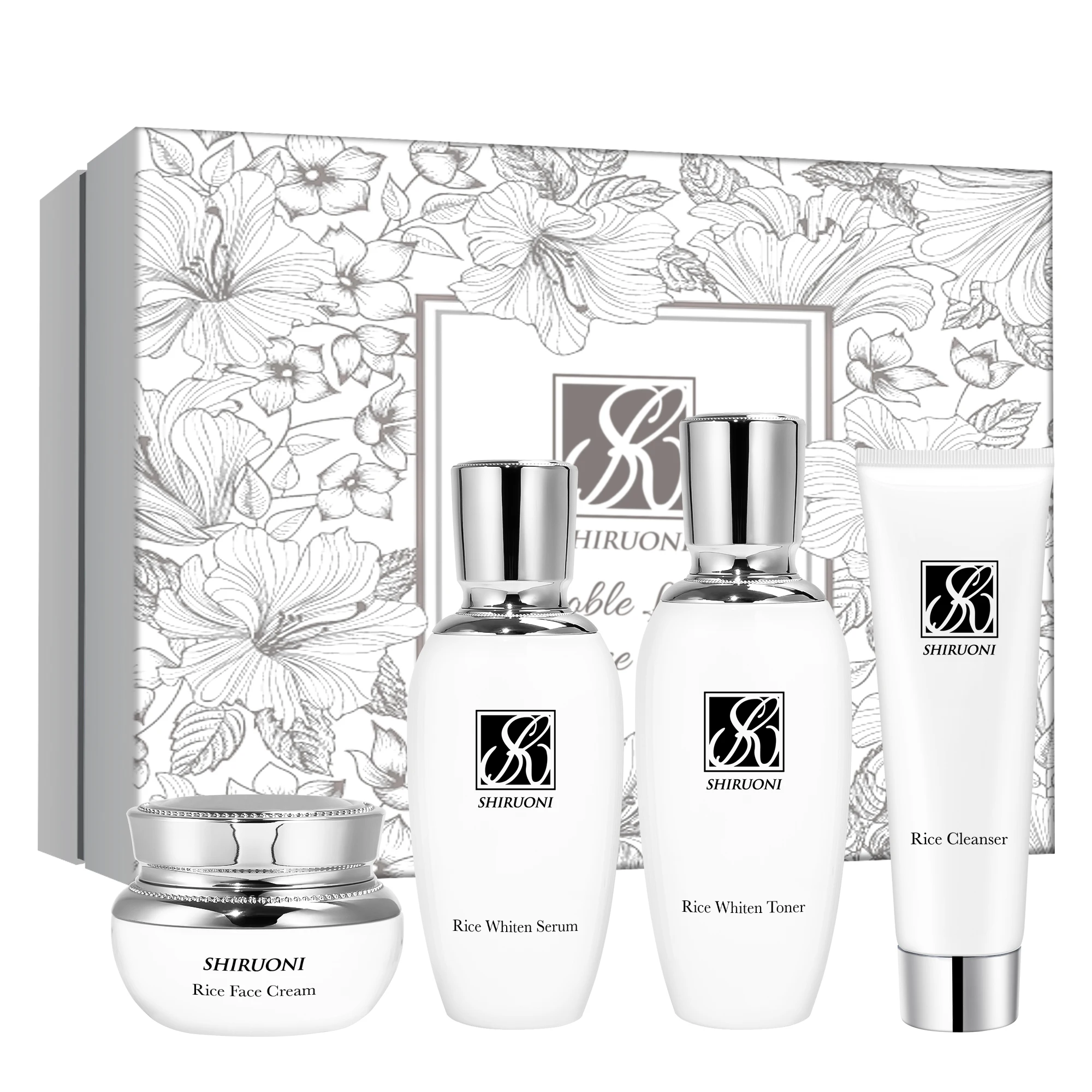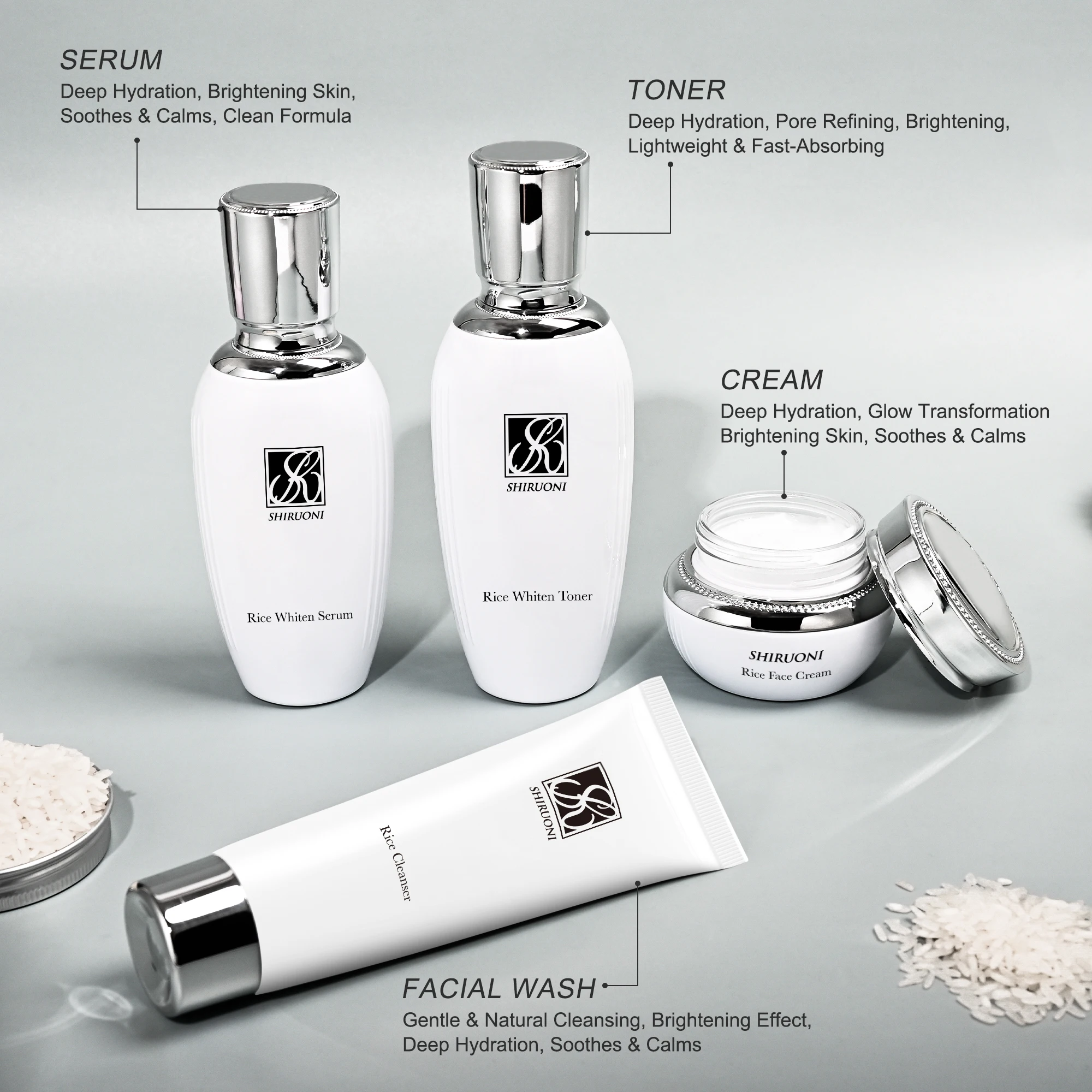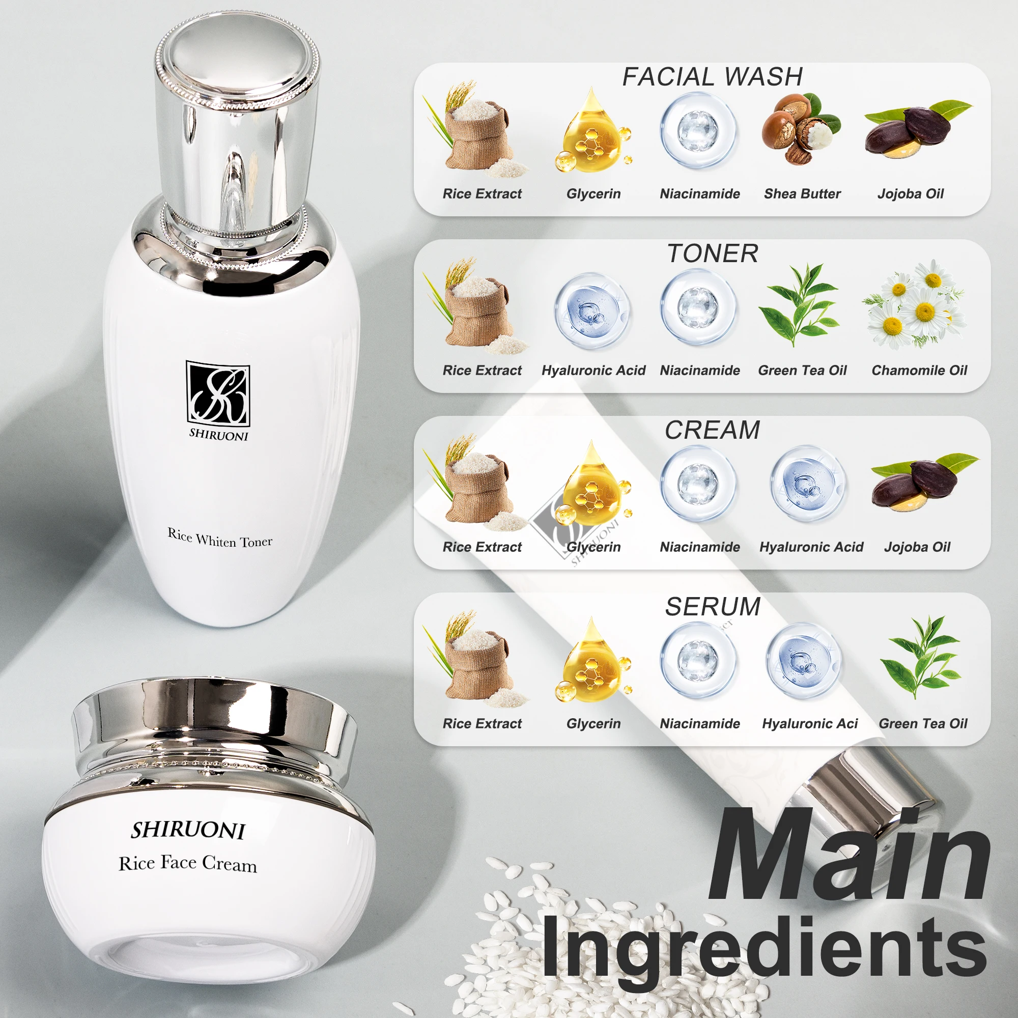 Private Label Vegan Organic Rice Facial Skin Care Set for Dark Skin Rejuvenating Lightening Anti-Wrinkle