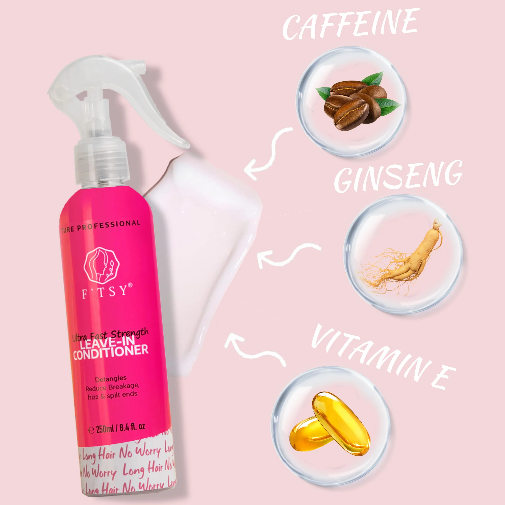 Private Label Leave-In Conditioner Spray & Detangler Grow Long Biotin Anti-Frizz Deep Conditioner