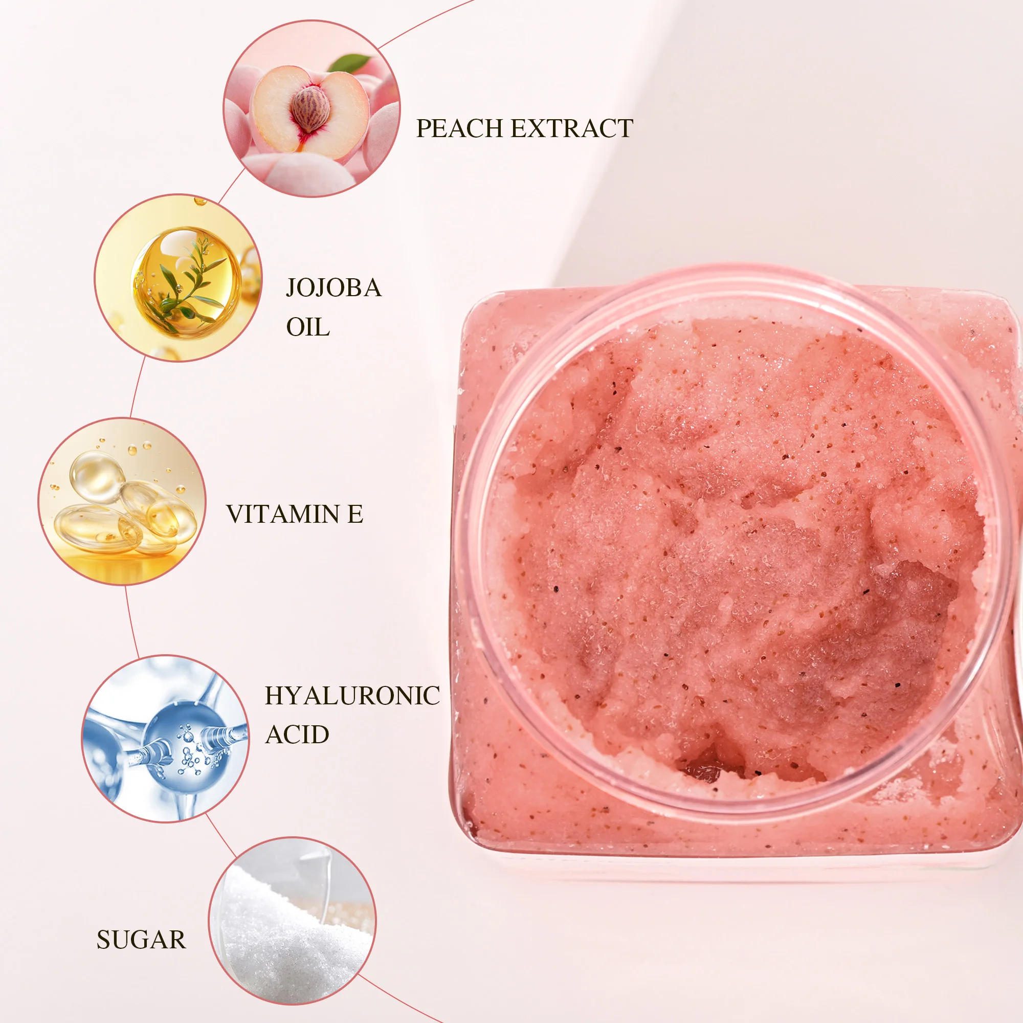 OEM Peach Fresh Body Scrub Exfoliating Deep Hydration Remove Dead Skin Cells Smooth Sugar Jojoba Oil Peach Extract Fresh Scrub