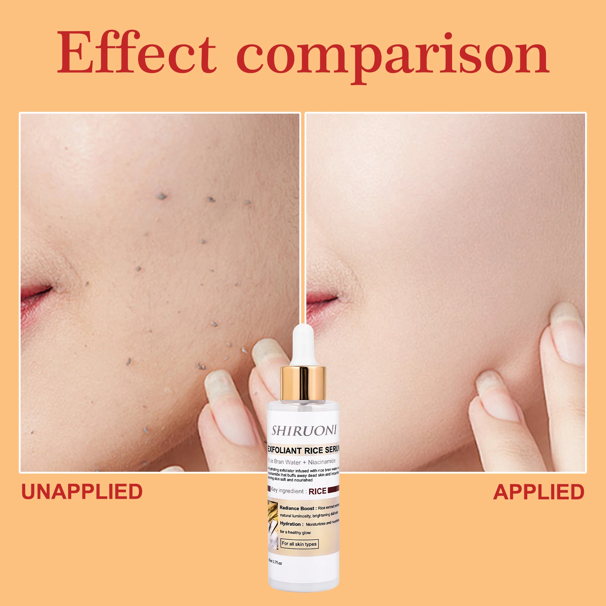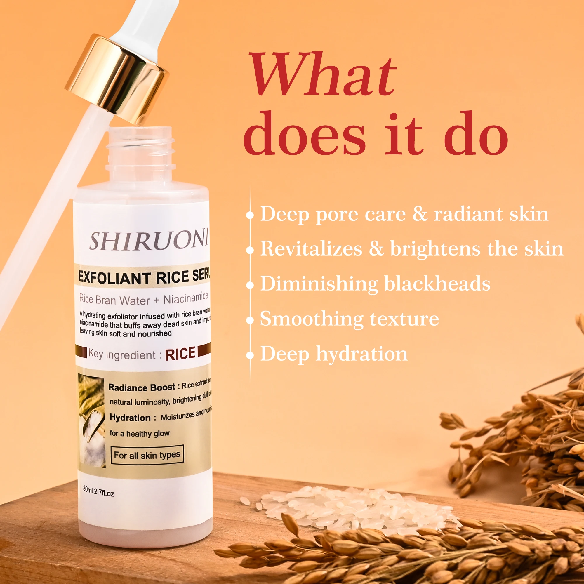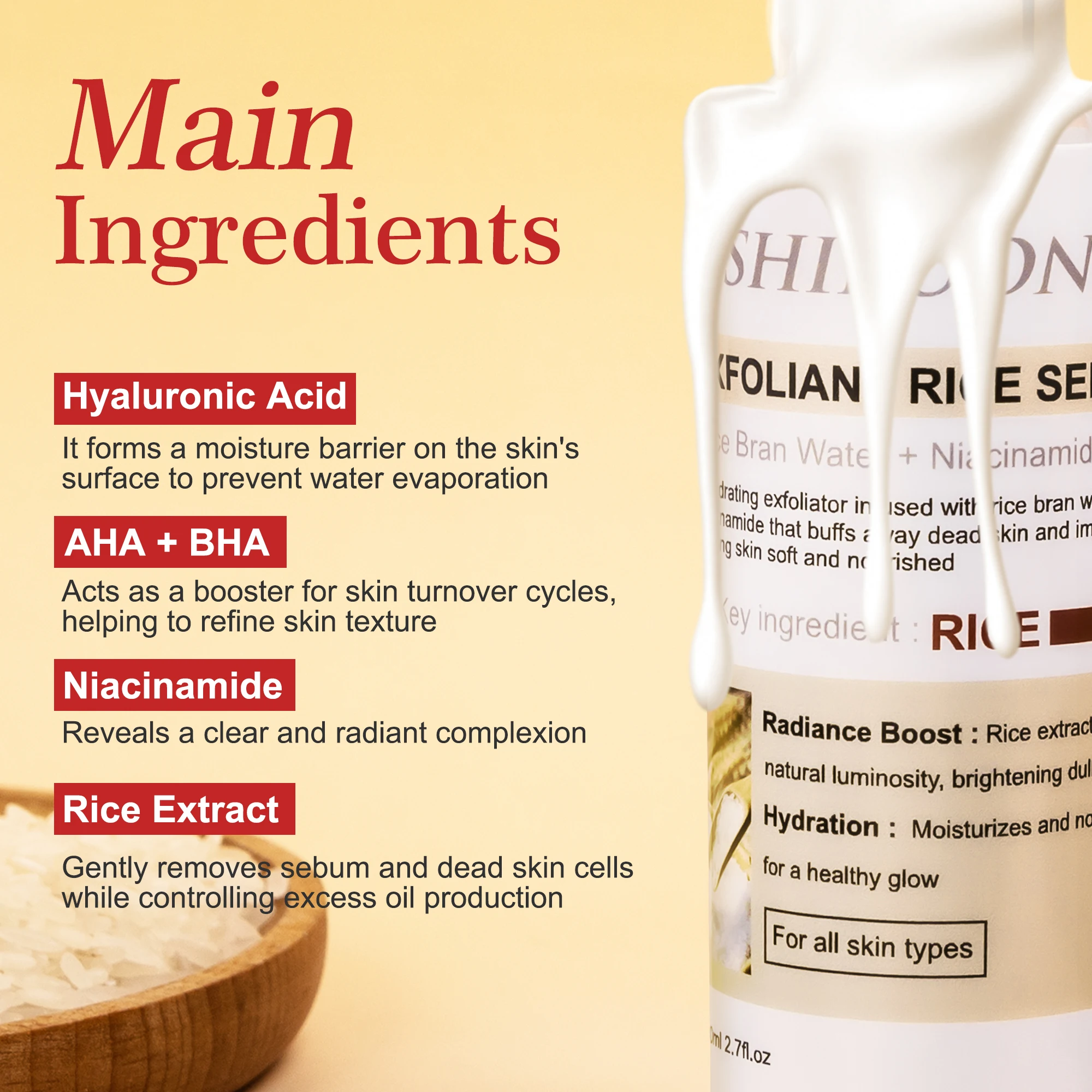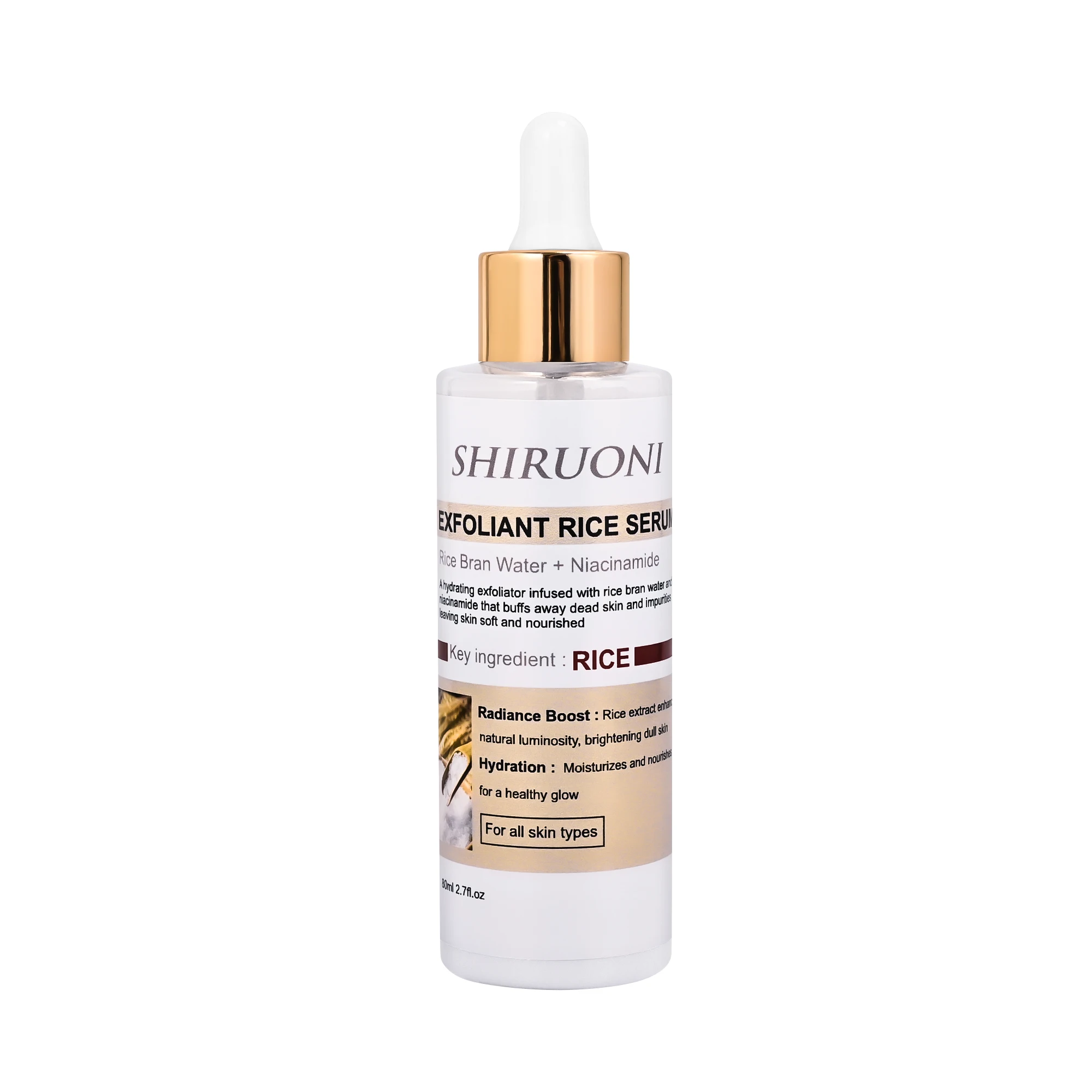 OEM Rice Face Serum Brightens Smooths Deep Hydration Skin Hyaluronic Acid Rice Bran Water Niacinamide Exfoliant Face Serum
