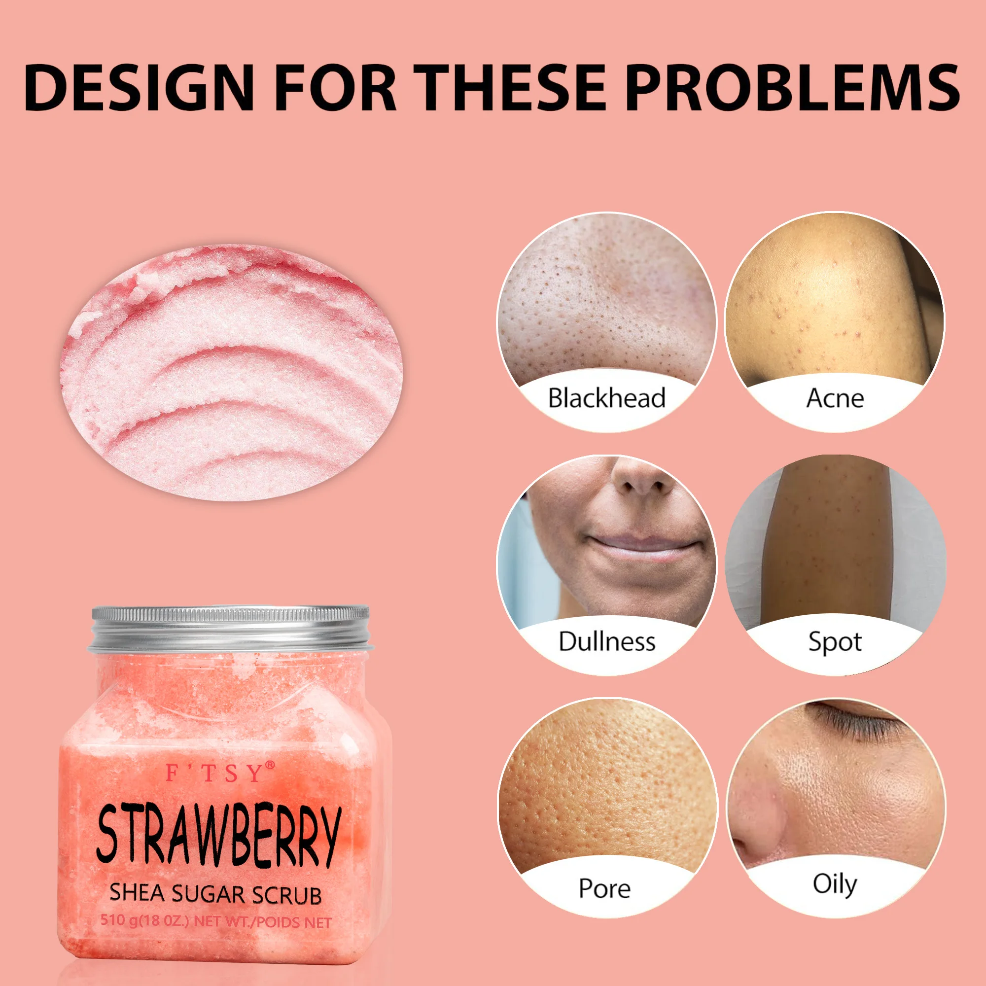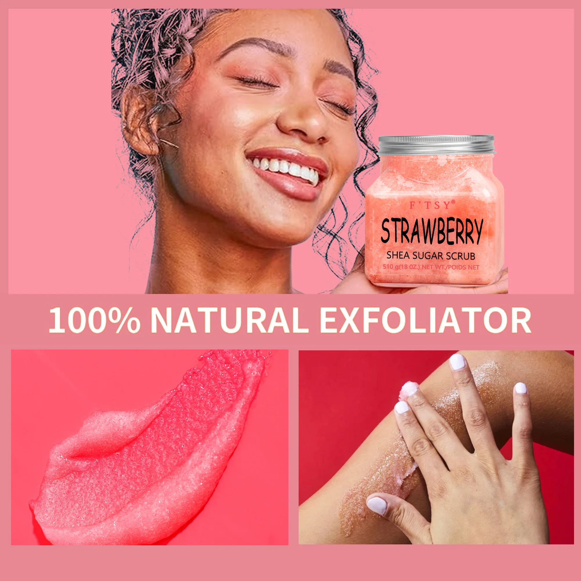 Custom Natural Organic Strawberry BHA Sugar Scrub Whitening Hydrating Exfoliator for Face Skin Cleansing