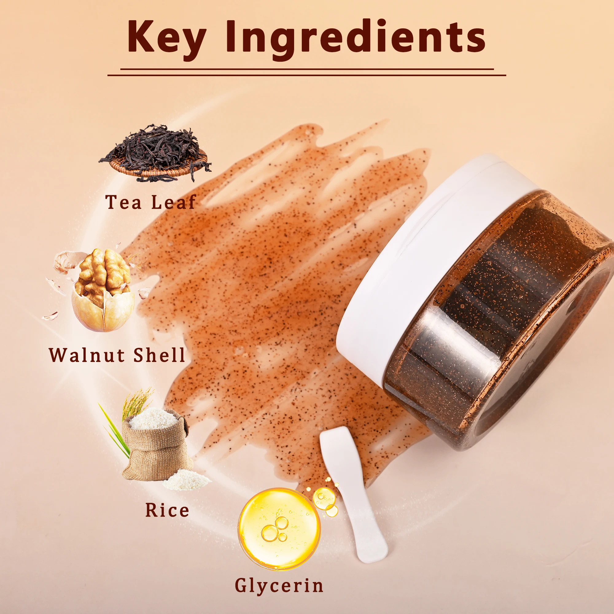 Private Label Tea Body Scrub Face Body Hand Foot Scrub Tea Leaf Walnut Shell Rice Exfoliating Soothes Moisturizes Body Tea Scrub