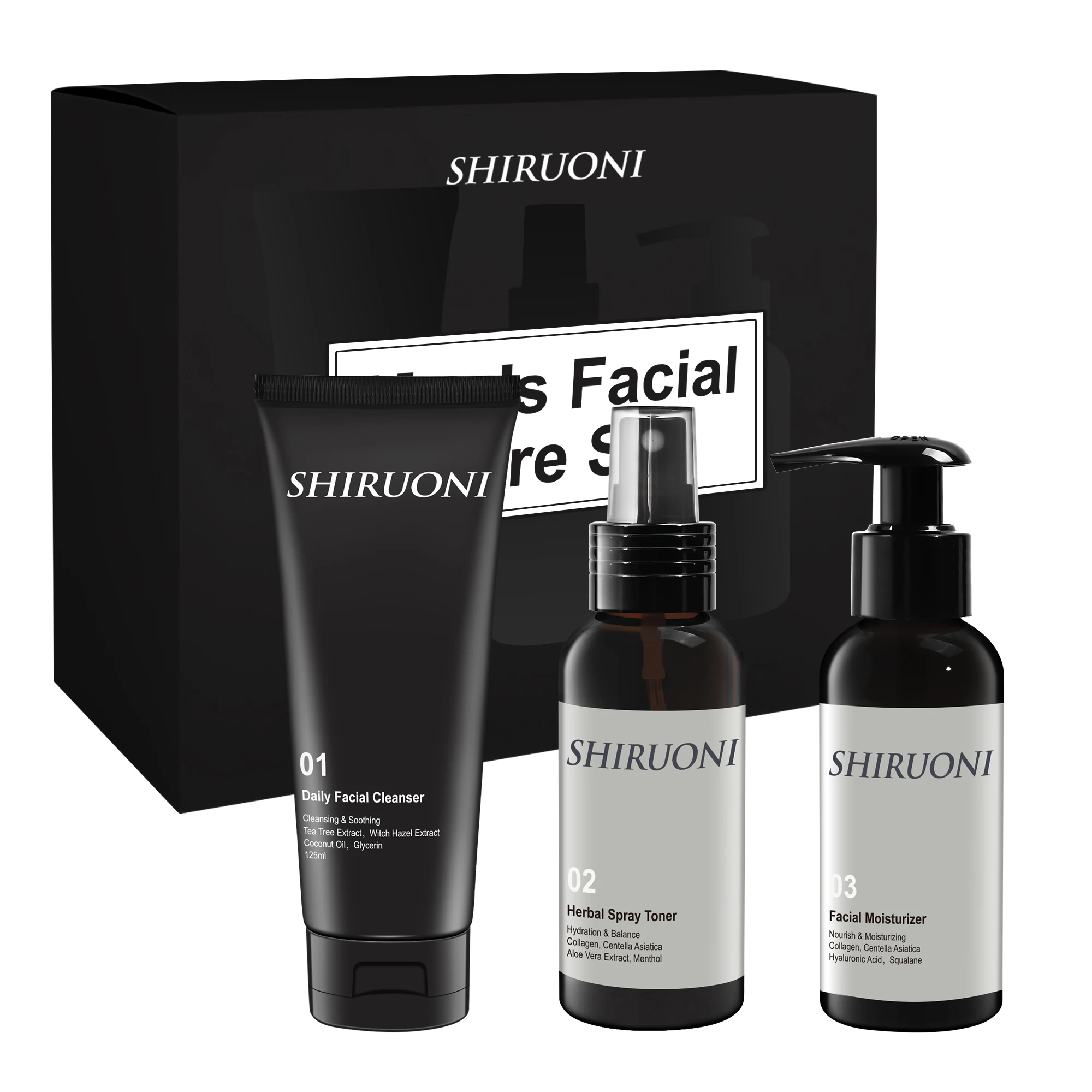 OEM Natural Men Skincare Set Anti Wrinkle Face Cream Moisturizer Facial Cleanser Moisturizing Toner Skin Care Set for Men