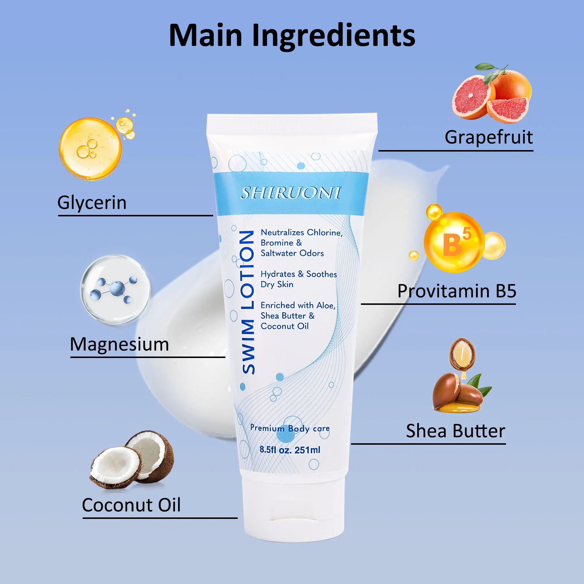 Private Label Post Swimming Body Lotion with Grapefruit & Magnesium Chlorine Removal Whitening Skin Care for Swimmers