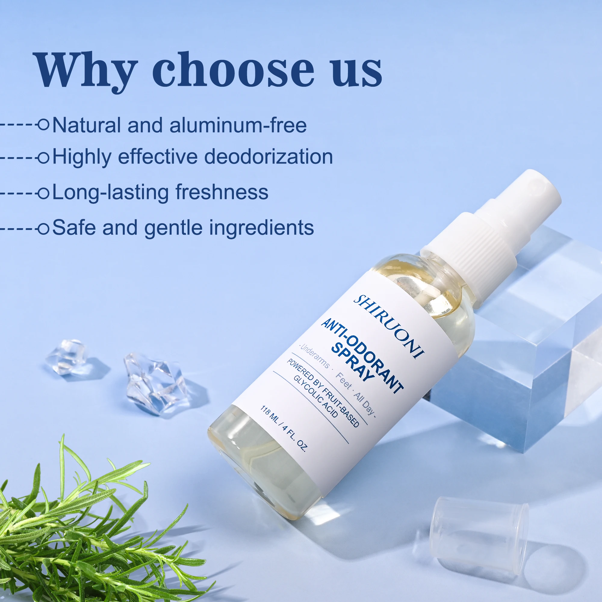 Custom Long Lasting Refreshness Underarm and Foot Body Spray Deodorizing Mist Anti Sweat Odor Control