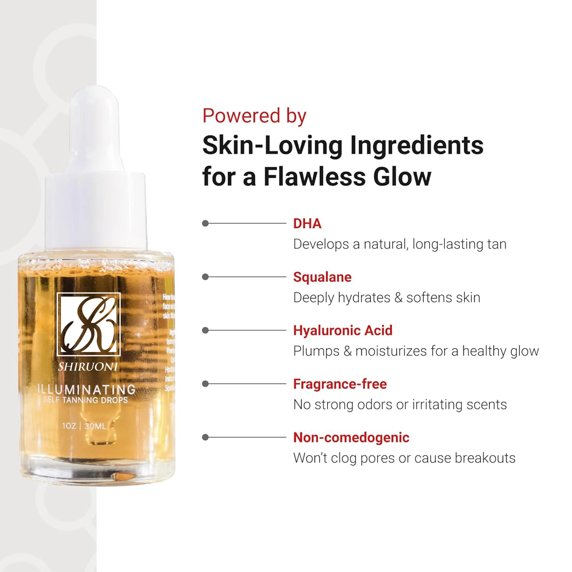 Customizable Vegan Organic Squalane Hyaluronic Acid Self-Tan Drops Face Smoothing Skin Care Serum DHA Tanner