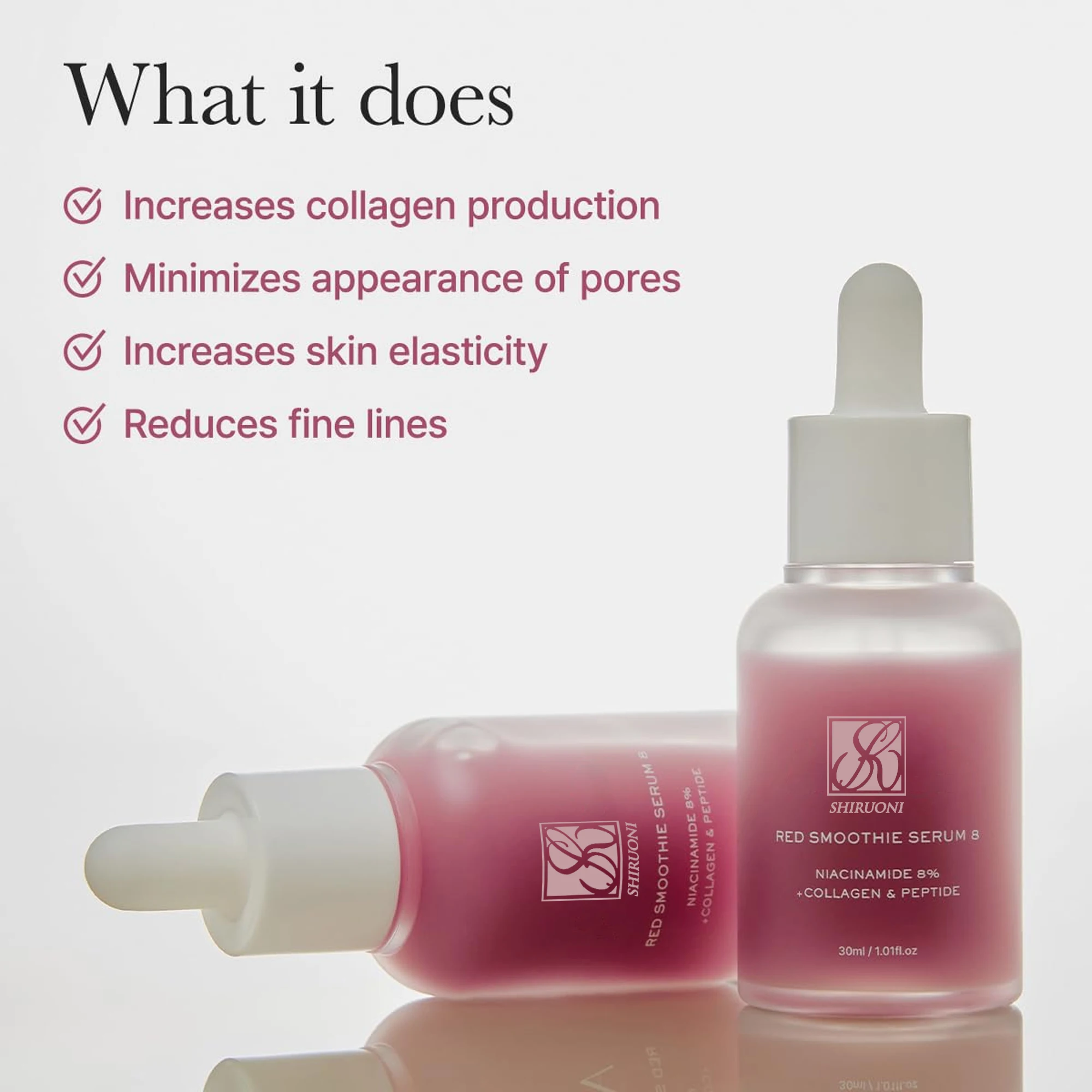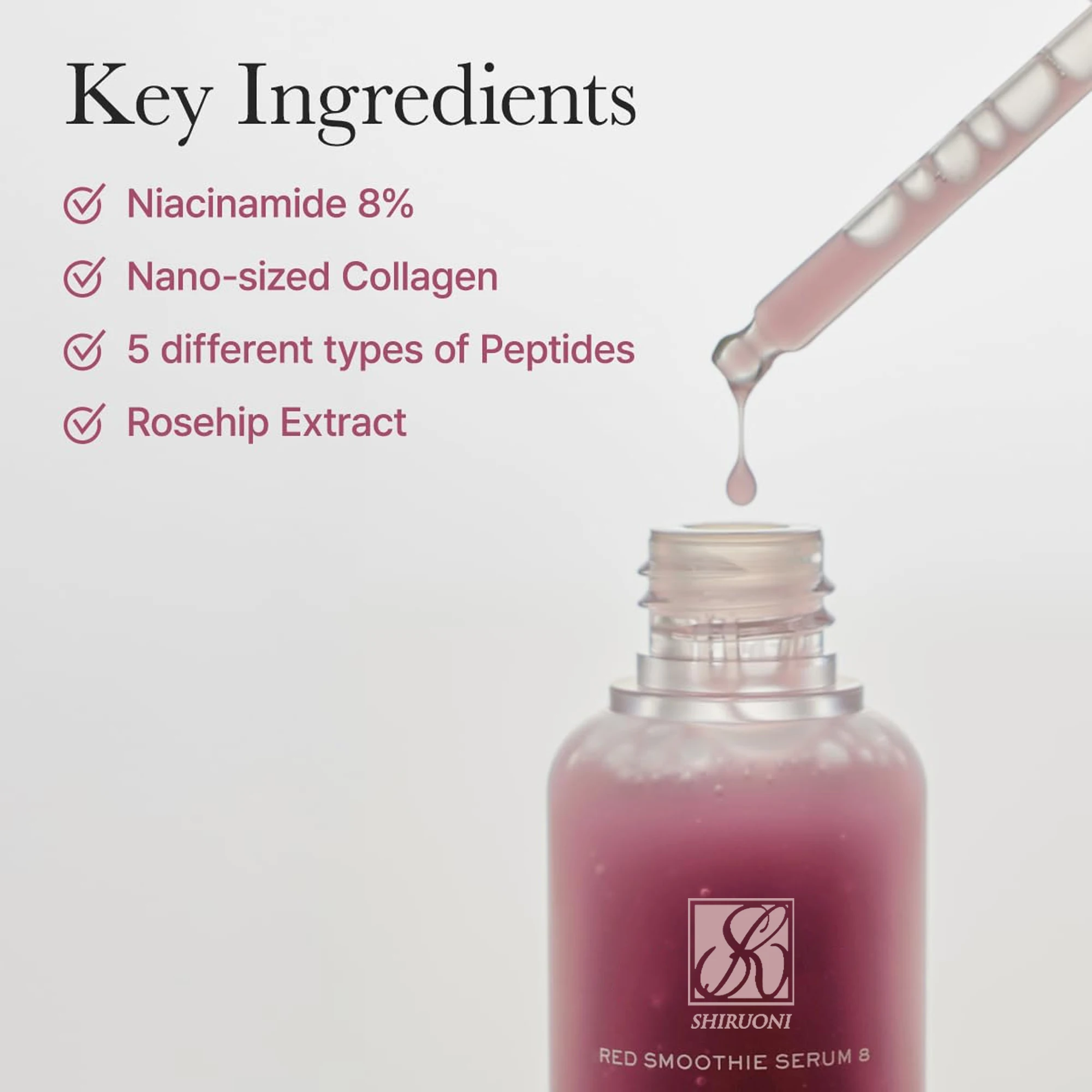Private Label ODM OEM 8% Niacinamide Nano-sized Collagen & Peptide Rose Hip Extract Whitening Red Collagen Smoothie Facial Serum