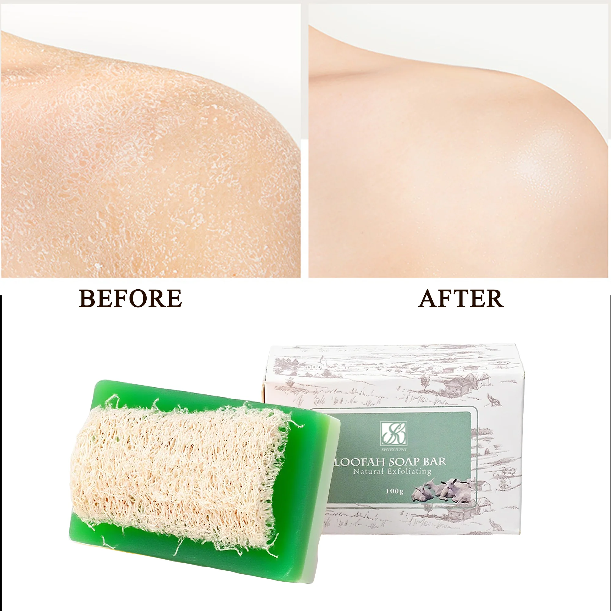Custom Natural Handmade Aloe Vera Body Soap Loofah Bar Brightening Whitening Exfoliating Toilet Bath Soap