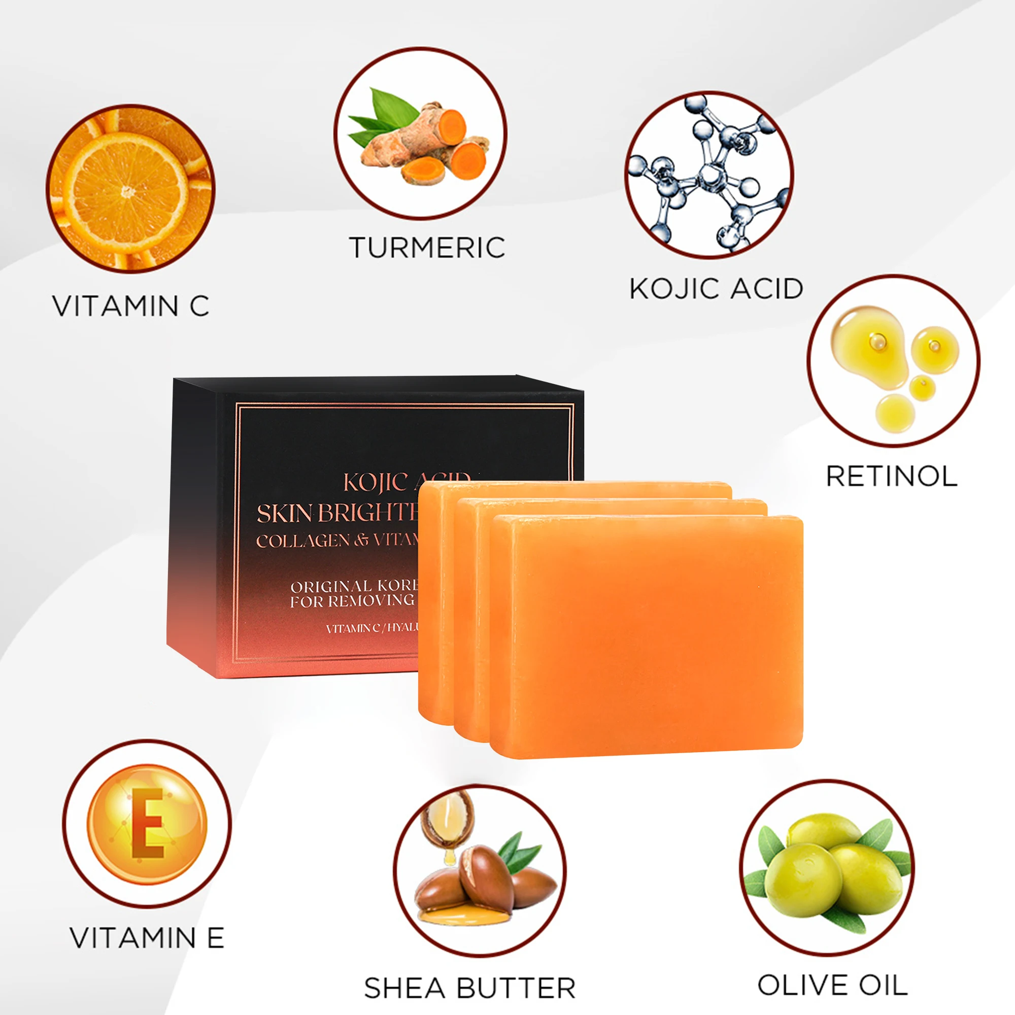 Handmade Kojic Acid Soap for Dark Skin Natural Bath Soap for Lightening Whitening Bleaching Brightening Face Body Bath 100g 3Pcs