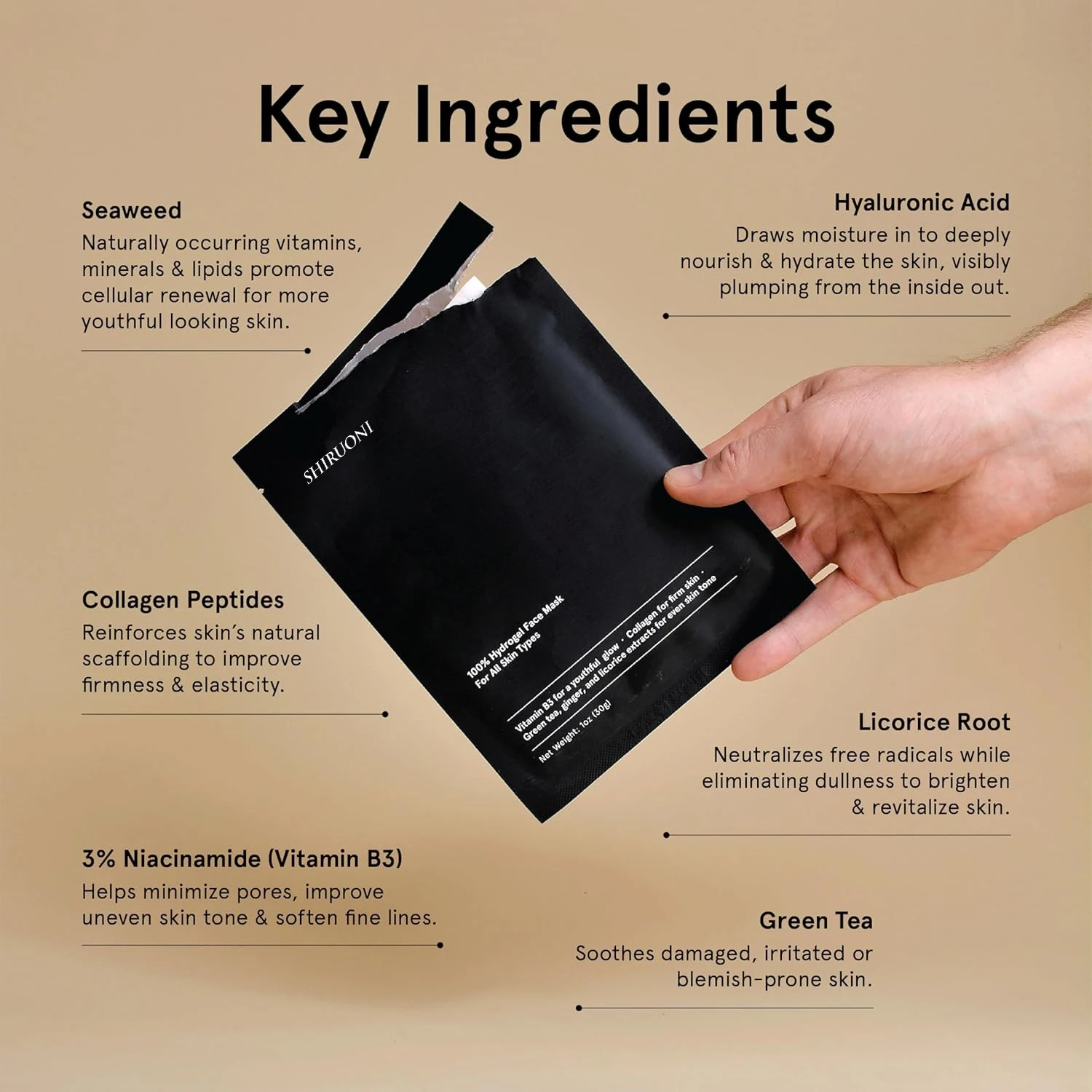 OEM Face Mask Men Premium Hydrogel Green Tea Hyaluronic Acid Collagen Hydrating Firming Even Skin Tone Men Facial Sheet Masks