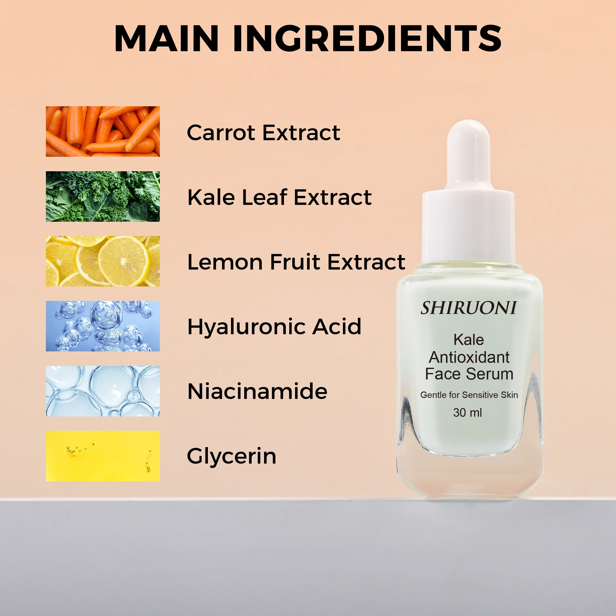 Private Label Niacinamide Serum with Hyaluronic Acid & Superfood Kale Anti-Wrinkle Hydrating Face Serum Customizable