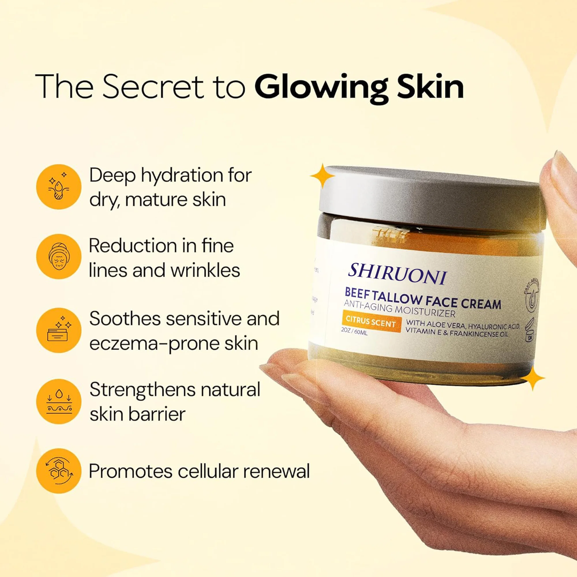 OEM ODM Organic Natural Citrus Scent Beef Tallow Moisturizer Face Cream for Dry Skin Winter Hydrating Aloe Vera Face Body Cream