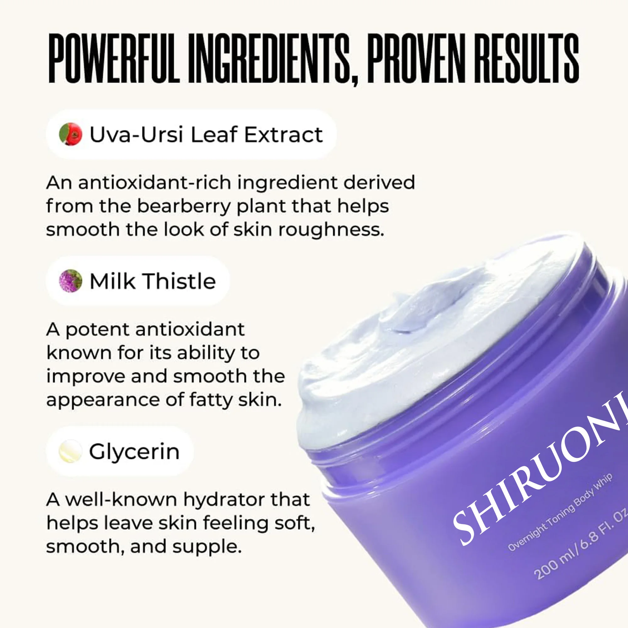 Private Label Overnight Toning Body Whip Uva Ursi Leaf Extract Milk Thistle Glycerin Help Target Skin Overnight Toning Body Whip