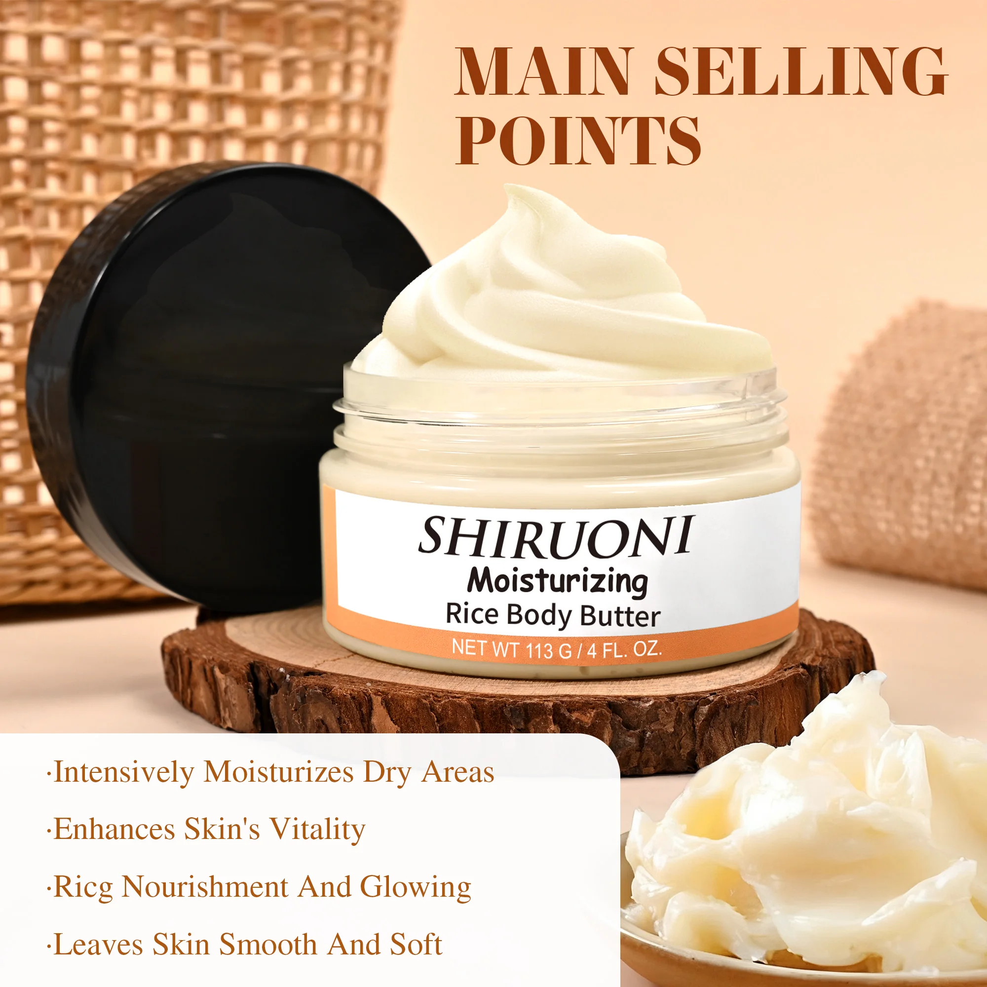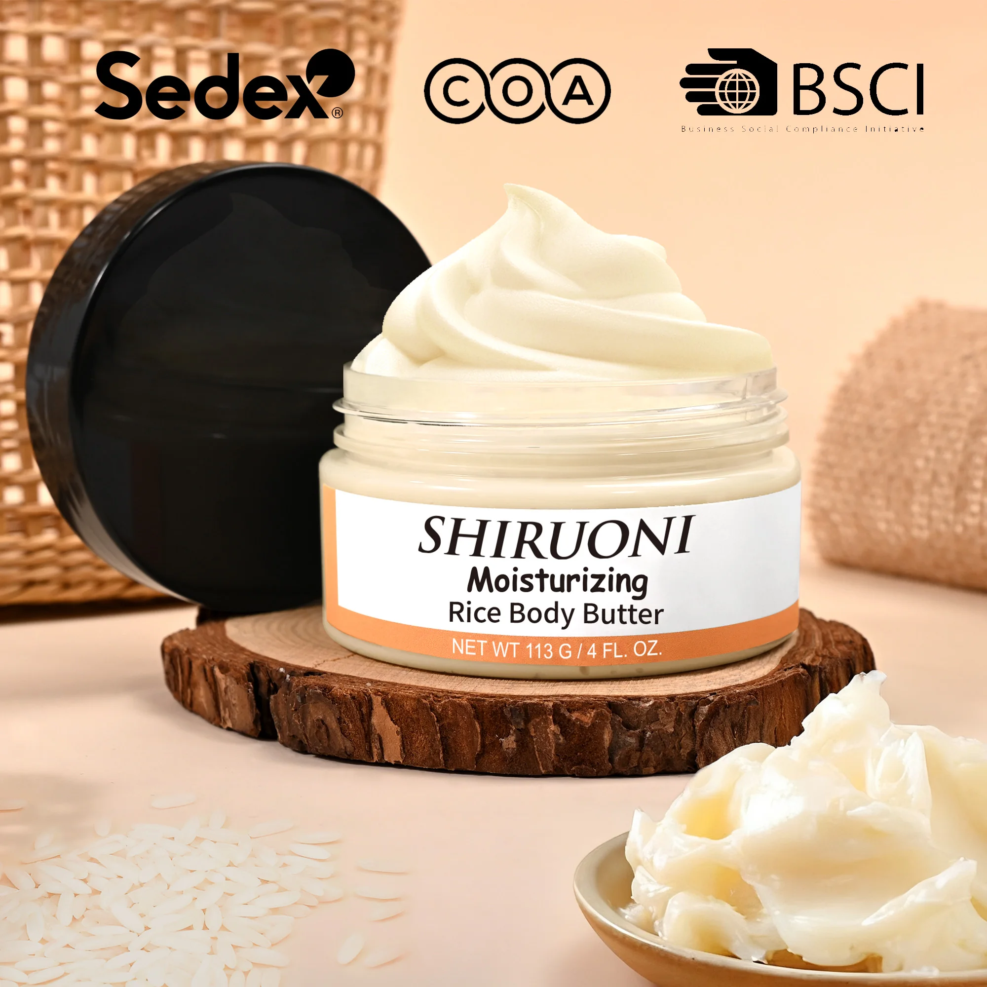 Private Label Organic Vegan Rice Ceramide Shea Butter Glycerin Anti-Wrinkle Moisturizing Hydrating Body Butter Cream