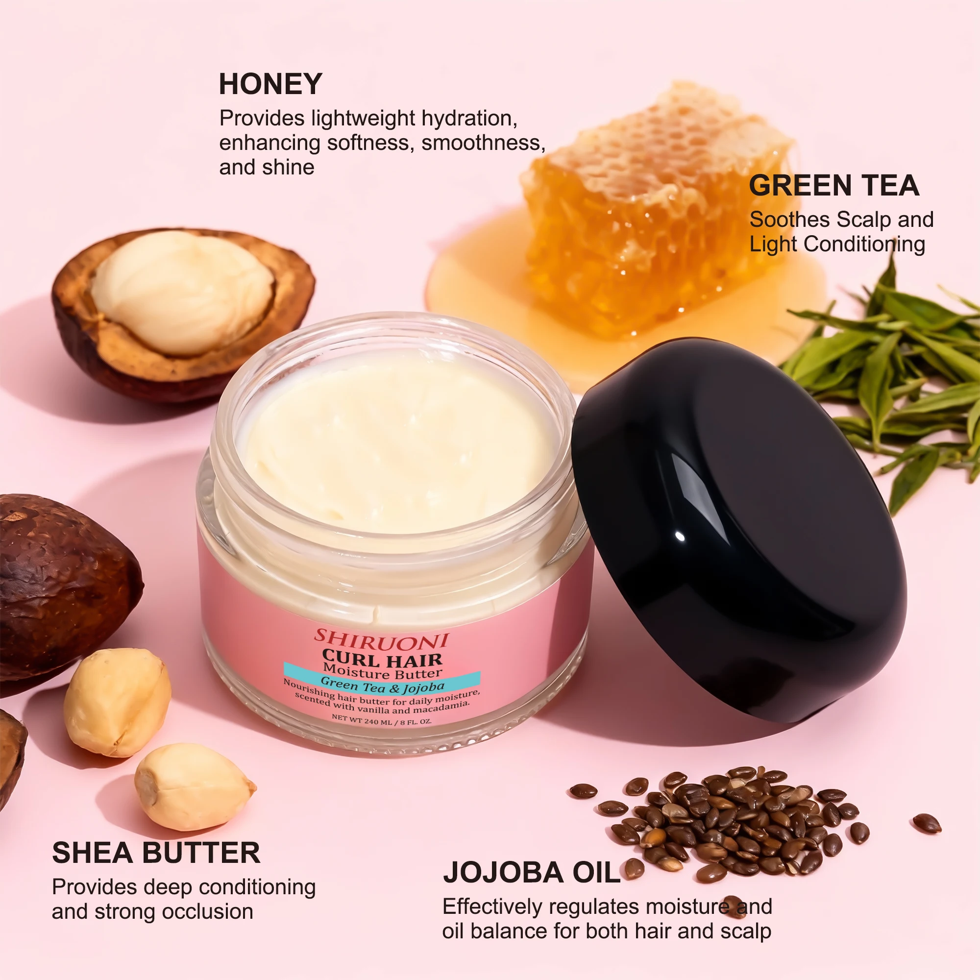 Wholesale Organic Natural Green Tea Shea Butter Nourishing Smooth Hair Hydrating Repairing Cream Butter Mask Private Label