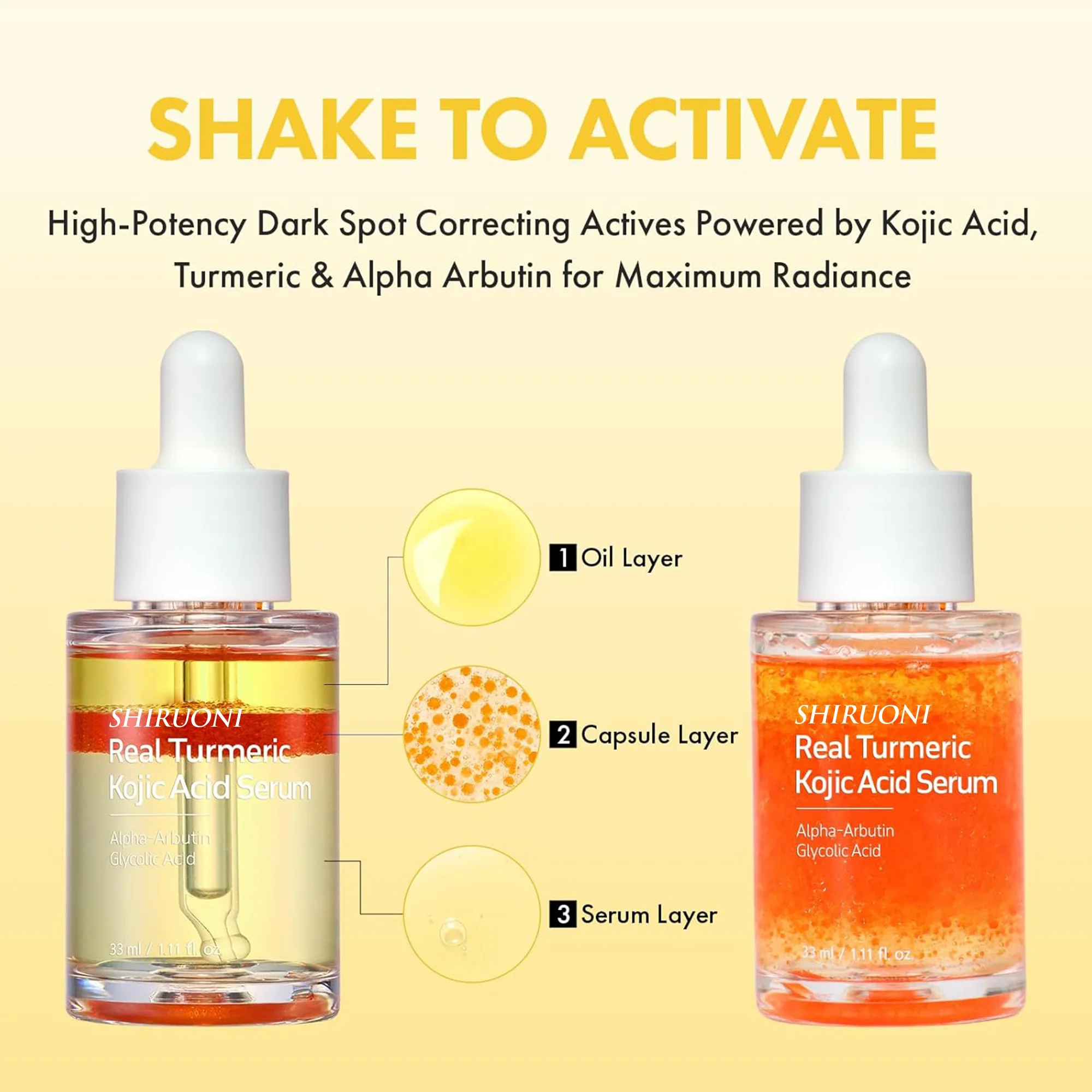 Organic Kojic Acid Turmeric Triple Layer Micro Oil Capsule Face Serum Brightening Revitalizing Pore Shrinking Private Label